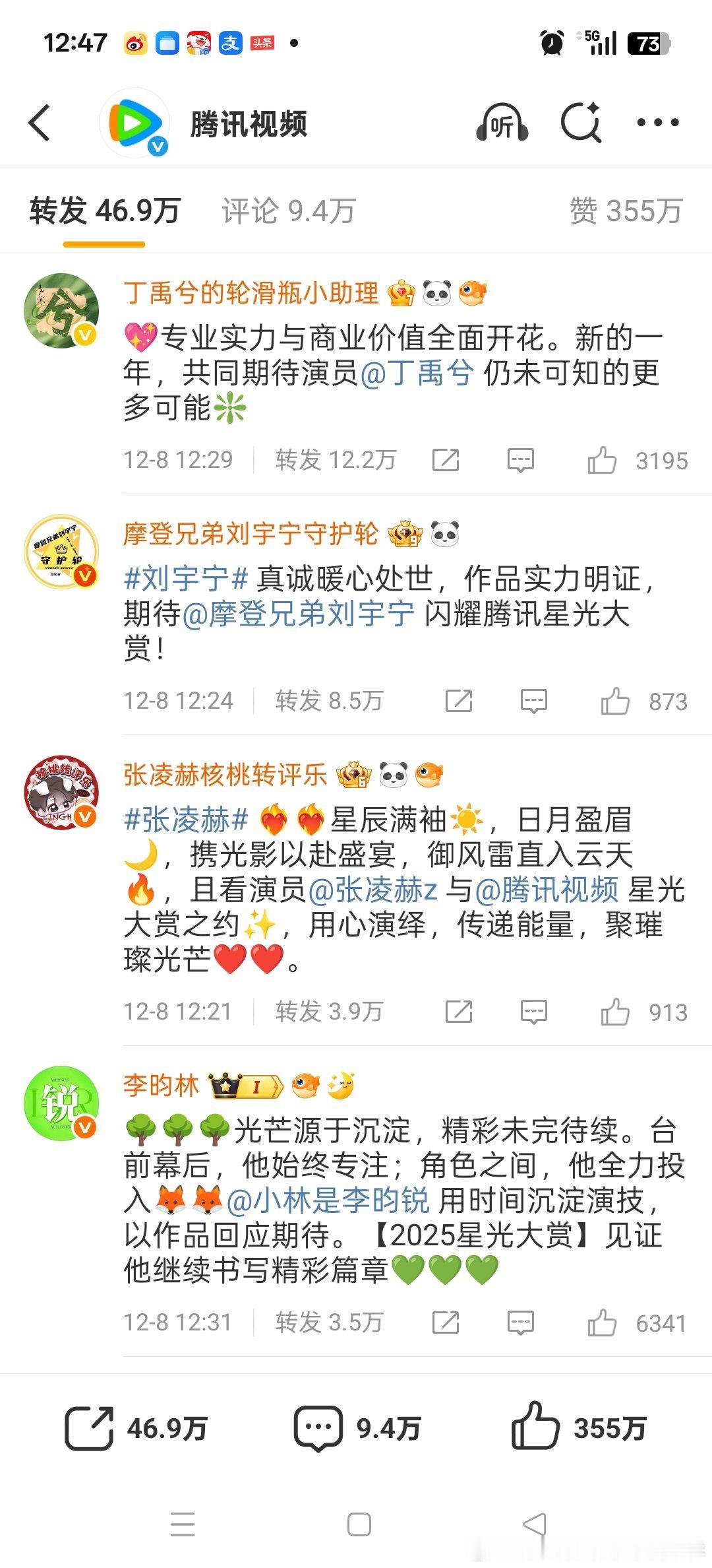 🐧星光大赏官宣,空瓶区前20都是鞠婧祎男流量们都好氵