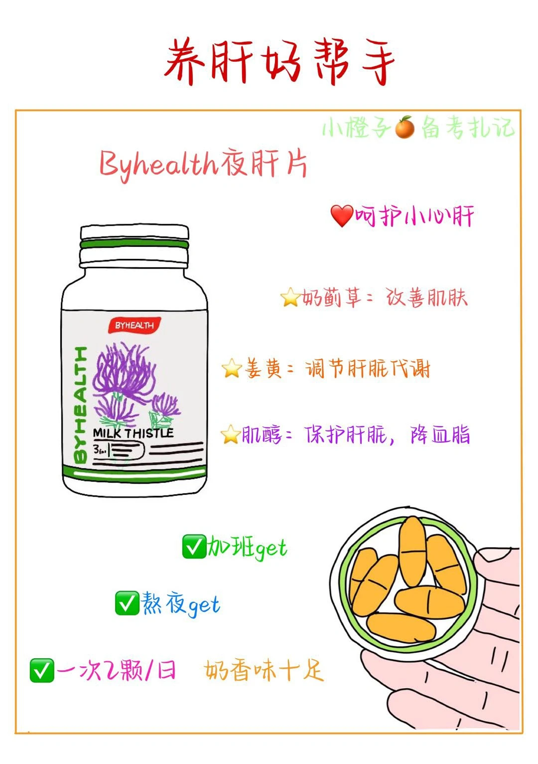 🍀在我们忙碌的生活和工作中,往往很难保证充足的睡眠和饮食的规律。可以试试Byhealth夜肝片,内调养护小心肝,里面姜黄能够调节肝脏代谢、肌醇保护肝脏的同时可以降血脂、奶蓟草更是能够抗氧化,改善肌肤,三大重要成分协同呵护你的小心肝[偷笑R]浓浓的奶香味十分的nice[赞R]经常熬夜上夜班的姐妹可以去海外旗舰店get✅起来[哇R]