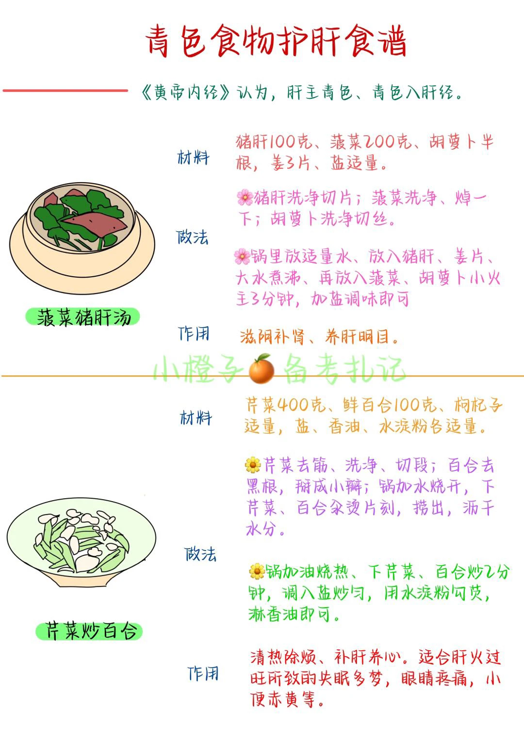 ❤️青色食物护肝食谱:菠菜猪肝汤和芹菜炒百合等