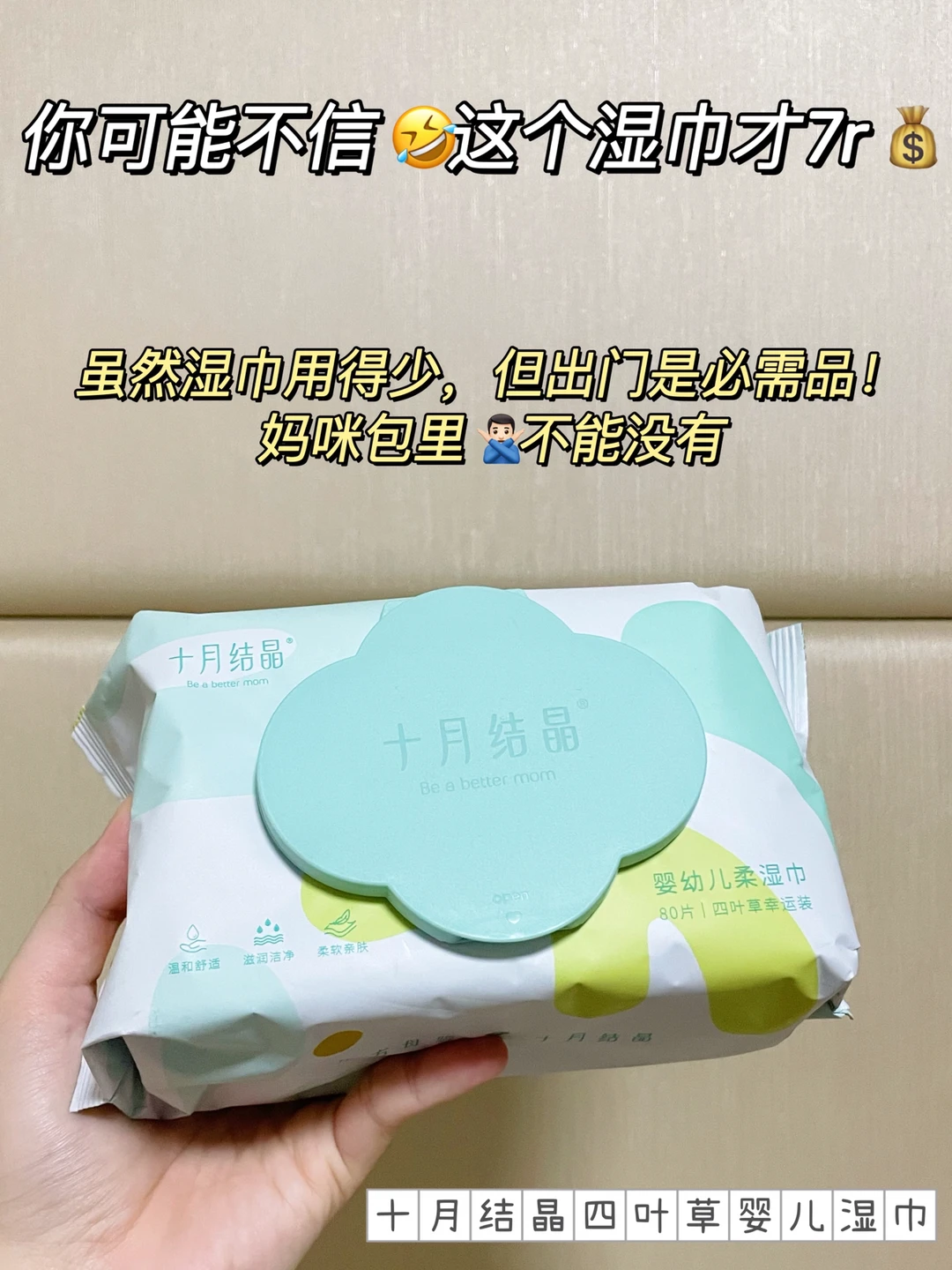 另外,🍀十月结晶四叶草婴儿湿巾,酒精香精什么的都没有。12 层 EDI 纯水,比纯净水还干净,用着你会安心很多。而且又大又厚实,像小毛巾一样,一面是星星纹路,清洁起来很给力,一面则是光滑面,主要用来擦手擦嘴,更柔和。