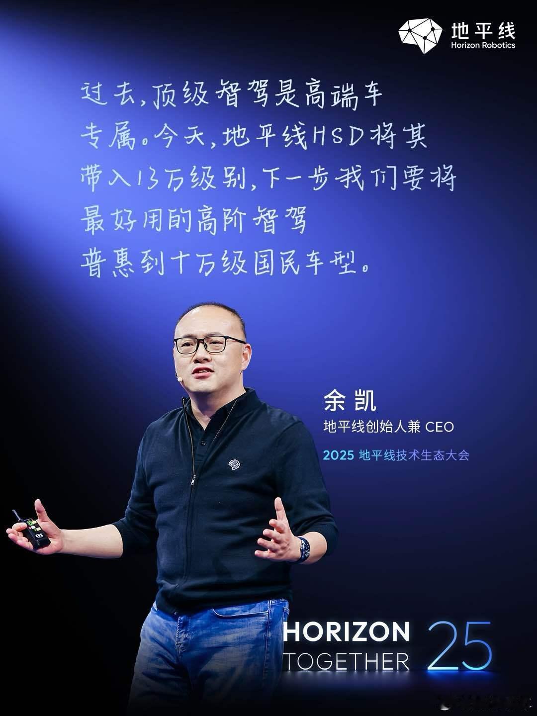 从“向高而行”到“向高同行”,携手抵达科技普惠的彼岸当智能浪潮席卷万物,我们如何与行业共同驶向下一片彼岸?地平线创始人兼CEO余凯的答案是:从“向高而行”走向“向高同行”,以颠覆性技术基座与开放生态,赋能伙伴迈入智能汽车与通用机器人的新时代。这一征程,根植于地平线的底层技术突破——以揭示高维世界简单之美的第四代BPU架构——黎曼、AI驱动的编译器和基座模型为核心,共同奏响硅基世界的宏大交响乐!而未来,也正以更开放、更可触的方式展开——地平线以领先的智能驾驶大模型,推开物理AI的广阔之门,以“比开放更开放”的HSD Together算法服务模式,助力伙伴降本增效、加速创新。我们不止将高阶智驾带入13万级别车型,更坚定推向十万级国民市场。让少数人的尖端科技,成为多数人的日常。地平线愿与所有同行者一起,以技术为基,以生态为桥,共赴下一个千万量产的智能时代。2025地平线技术生态大会人人都是中国智驾合伙人 北京
