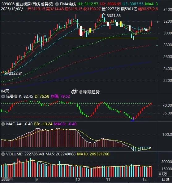 成交额重回2万亿,A股开启新一轮扩张?大盘今日小幅高开后震荡上扬,午后有所回落,最终报收小阳线。两市成交额2.04万亿,较上周五放量3109亿,时隔20个交易日两市成交额再度突破2万亿元。这意味着A股度过了低谷,开启了新一轮的扩张。很多个股也告别了至暗时刻,将出现新一轮上涨。需要注意的是,大盘从11月14日调整至今,才25个自然日,连一个月都不满,这个时间不太够,远远低于第二浪的69个自然日。它可能还会继续上下震荡,很难一口气突破4000点。不过,只要它不跌就足够了,只要它稳定,没有下跌风险,那些调整到位的板块才能顺利爆发。哪些板块调整到位了?我们先来看指数。创业板指与科创50都从国庆后就开始调整的,到现在刚好满了两个月,时间与空间都达标了,而且今天的表现都很好,创业板指的涨幅是宽基指数里最大的,科创50指数涨幅居第二、且出现了“芙蓉出水”形态。接下来,只要大盘稳定,创业板指与科创50指数可能会迎来新一轮上涨。创业板与科创板是科技股的集中营,比如CPO、芯片、机器人、AI应用,外加一个新能源(光伏、锂矿、固态电池、储能)。科技股的机会比较确定,新能源则需要消息面的刺激,主要是多晶硅的收储落地、碳酸锂的供需。总体上,大盘量价齐升,彻底告别了二次探底的可能。资金继续炒作老热点CPO、存储芯片,刺激创业板指、科创50指数涨幅居前。随着A股的回暖,业绩预期大增的光伏、锂矿、AI应用在持续缩量后,也出现了拐点迹象。目前只是预热,真正的大戏可能出现在本月下旬的年报预告。========盘后重要消息:1、佰维存储:宇树科技Go2智能机器狗中已应用公司的LPDDR4X、eMMC存储产品。佰维存储在互动平台表示,公司已推出适用于具身智能领域的eMMC、UFS、BGA SSD、LPDDR4X/5/5X等产品。根据第三方媒体拆解报告,宇树科技的Go2智能机器狗中已应用公司的LPDDR4X、eMMC存储产品。2、浙江荣泰:拟约5.45亿元在泰国投建年产1.4万吨云母纸、4500吨云母制品及700万套机器人部件生产项目。人形机器人火热起来了,股价也涨起来了,于是它们玩命扩产。这一幕,与三年前的多晶硅、锂矿等何其相似。机器人零部件表面上看是科技股,其实是周期股的内核。3、高盛绩前唱多美光,Q3业绩将大超预期。高盛分析师在业绩前发布预测,预计美光科技第三季度营收将达到132亿美元,超过华尔街127亿美元的普遍预期,预计每股收益为4.15美元,高于3.84美元的平均预期。4、美的集团:已完成100亿元股份回购方案,拟注销公司总股本1.24%。回购后注销,它A股里为数不多的好公司。它也不像格力电器那样很任性的搞跨界,实控人退居幕后由职业经理人打理,股价在2022年见底后走出了3年慢牛,距离2021年的历史高点只有一点点了。财经a股张柏芝庭审情绪失控崩溃大哭
