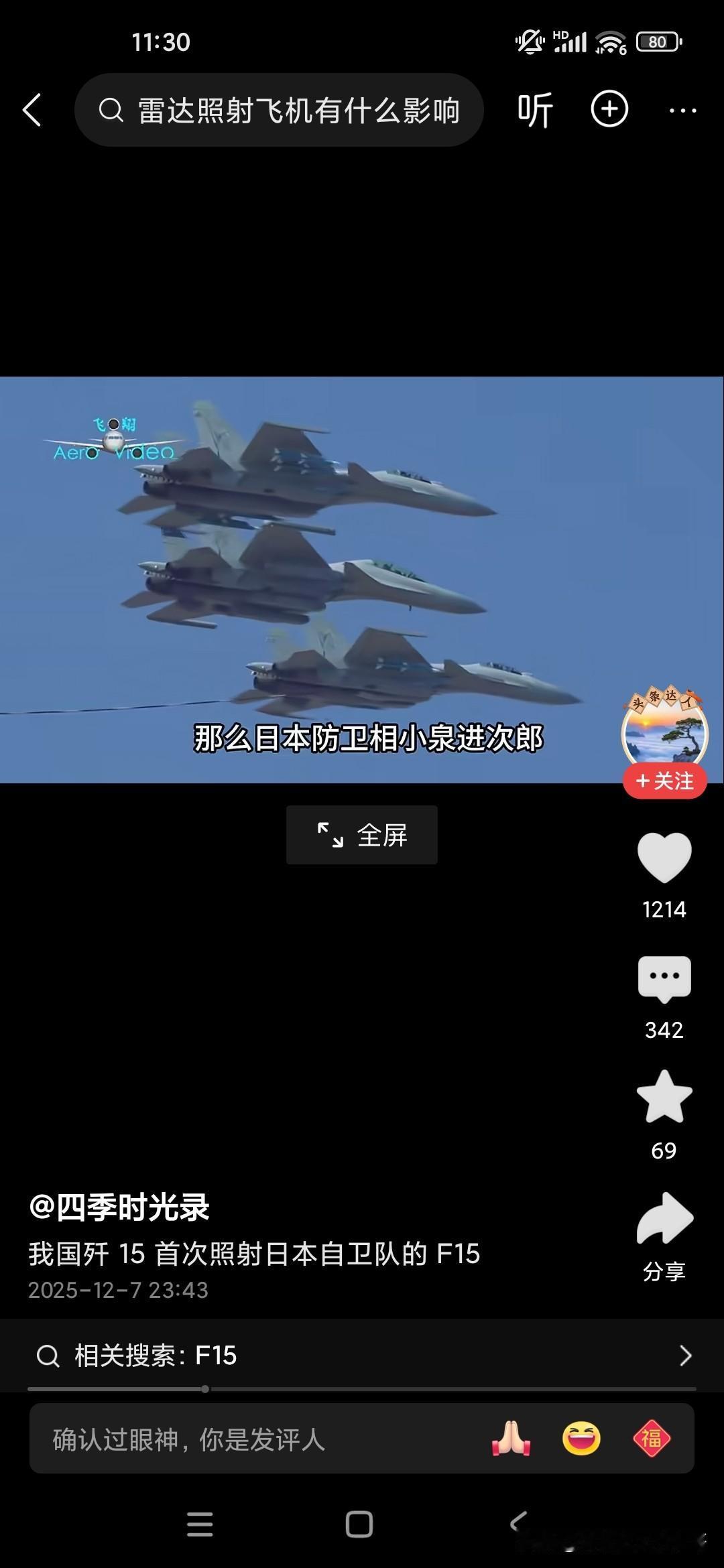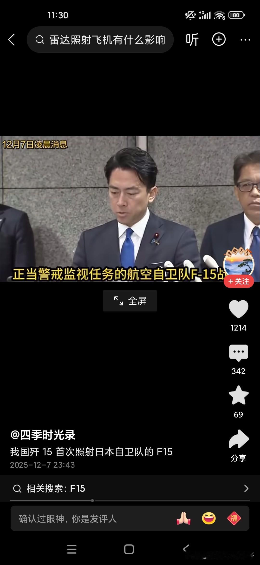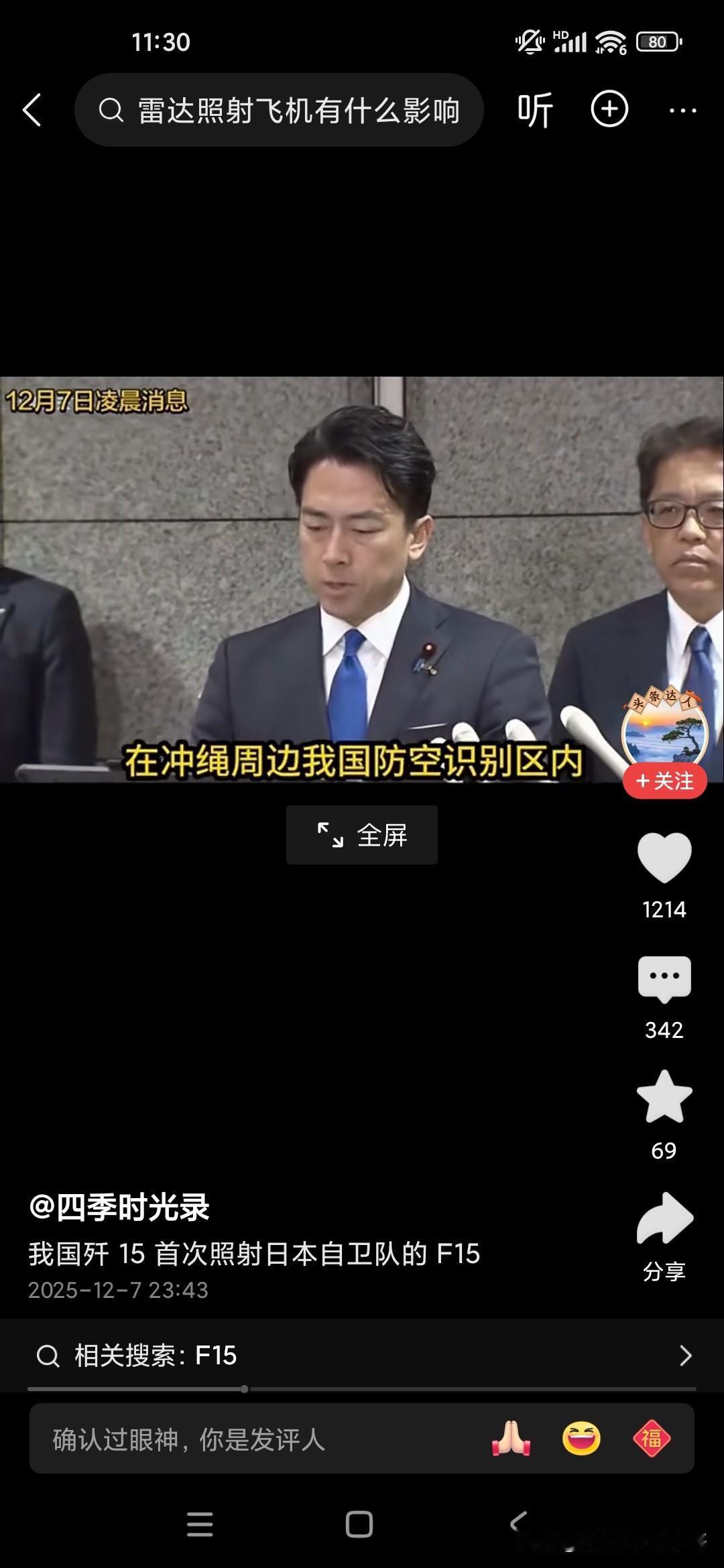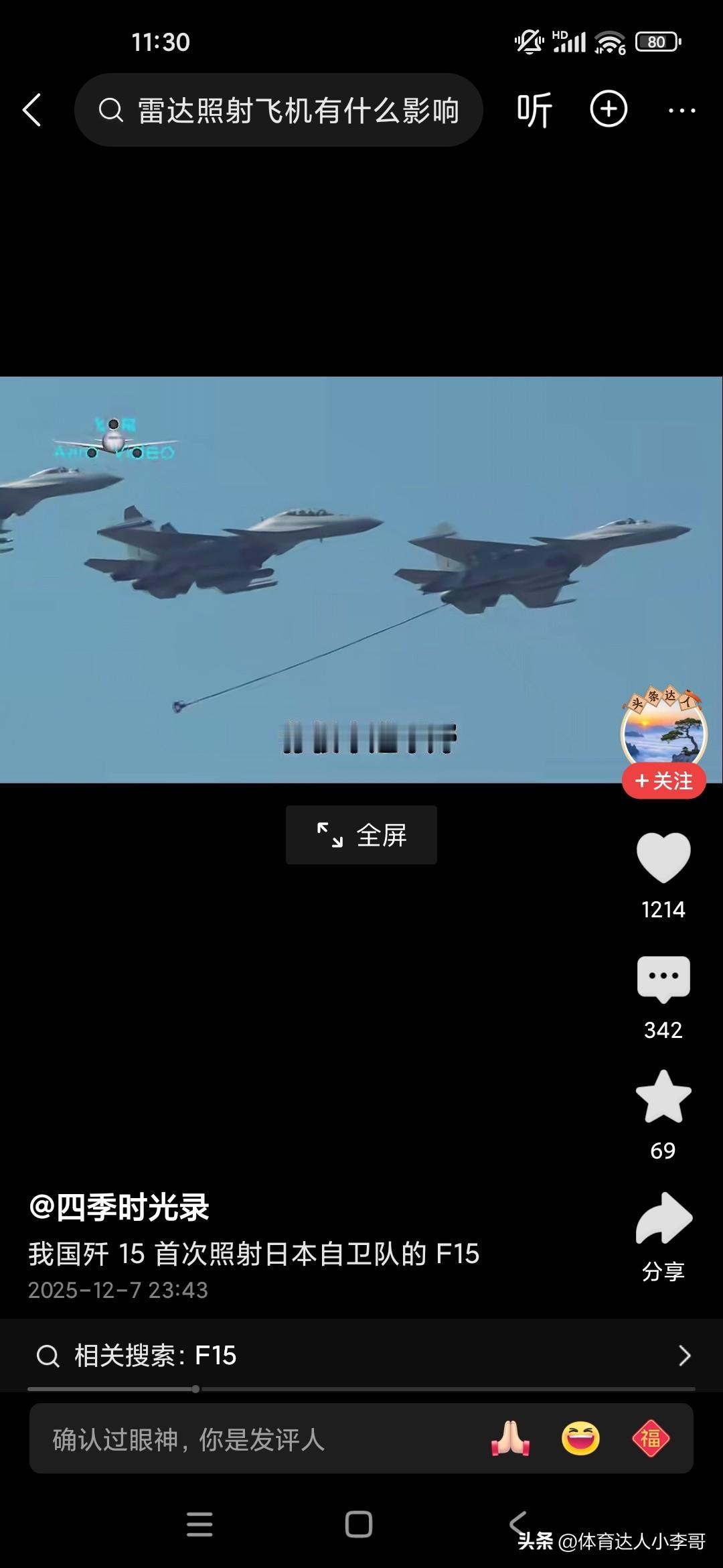 我们的歼15军机锁定了日本的F15整整30分钟吧,稍微有一点军事常识的人都知道火控雷达打开的时候就是要进攻的最后一个动作了,保险已经打开,导弹已经压好了,这个空对空导弹已经弄好了,就是随时准备发射,而且雷达照射军机对飞行员的伤害也很大,所以说日本的近卫大臣防相小泉进次郎半夜2点开发布会,说明他内心非常心虚,他非常害怕中国真的打起来的话,真的招架不住,美国又不敢明确反对,虽然说有日美安保条约,但是美国不敢真正的去触中国的霉头,因为现在他自己也自身难保,特朗普又想在明年4月份访问中国,所以在这之间的话,他不想发表任何与中国国策或者说是伤害中国人民感情的事情,所以说美国啥也没说,最后小泉进次郎没有办法,只能去找澳大利亚国防部长商量一下。 大家都知道,年初的时候我们的055大驱围绕澳大利亚整整跑了两圈呀,最后放了一炮,他国防部长本来是装聋作哑的,后来实在没有办法了,说中国的军舰是在公海里边演习,跟他们没有什么关系,明眼人一看都知道了,他们只敬畏大炮,只敬畏你的军事实力,其他的他都喜欢打打嘴炮。 真希望日本人这次还是不要怂,如果他们胆敢开第一枪,嘿嘿,正好中了我们的计!