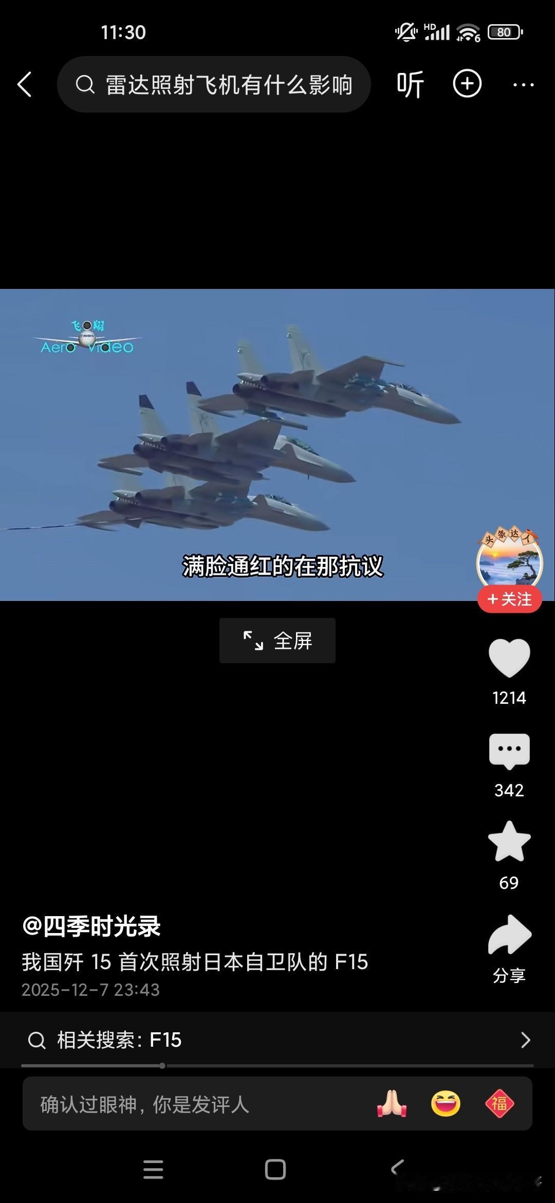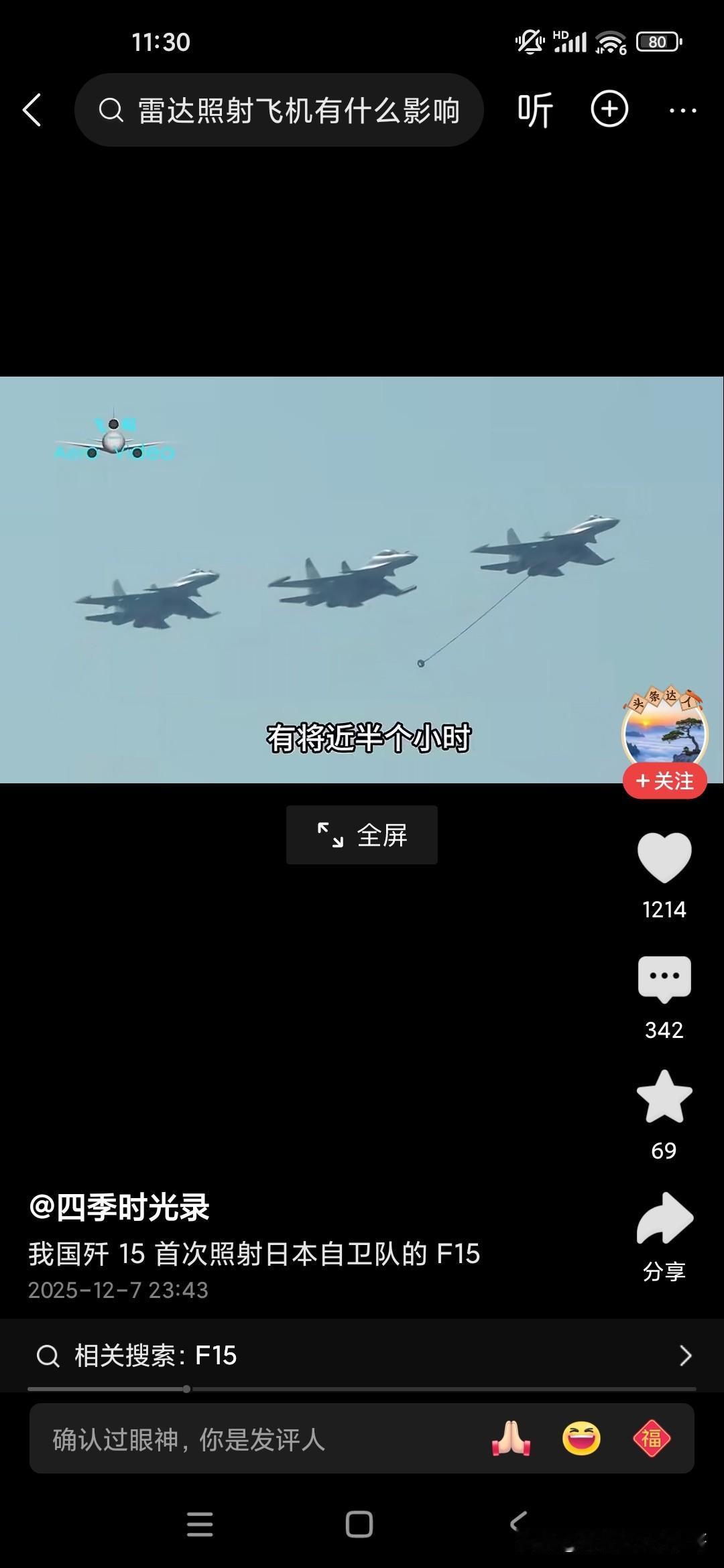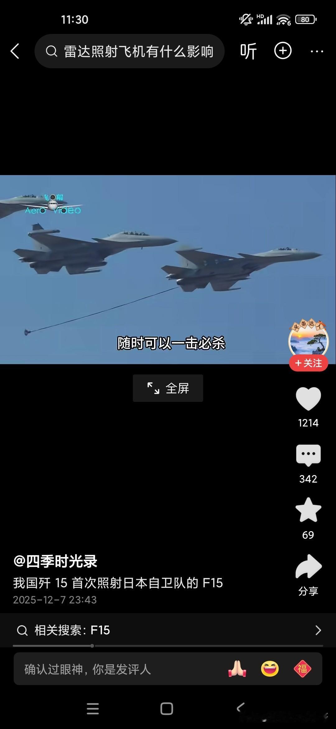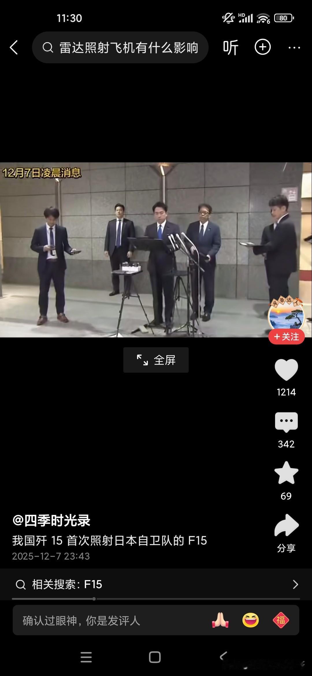 我们的歼15军机锁定了日本的F15整整30分钟吧,稍微有一点军事常识的人都知道火控雷达打开的时候就是要进攻的最后一个动作了,保险已经打开,导弹已经压好了,这个空对空导弹已经弄好了,就是随时准备发射,而且雷达照射军机对飞行员的伤害也很大,所以说日本的近卫大臣防相小泉进次郎半夜2点开发布会,说明他内心非常心虚,他非常害怕中国真的打起来的话,真的招架不住,美国又不敢明确反对,虽然说有日美安保条约,但是美国不敢真正的去触中国的霉头,因为现在他自己也自身难保,特朗普又想在明年4月份访问中国,所以在这之间的话,他不想发表任何与中国国策或者说是伤害中国人民感情的事情,所以说美国啥也没说,最后小泉进次郎没有办法,只能去找澳大利亚国防部长商量一下。 大家都知道,年初的时候我们的055大驱围绕澳大利亚整整跑了两圈呀,最后放了一炮,他国防部长本来是装聋作哑的,后来实在没有办法了,说中国的军舰是在公海里边演习,跟他们没有什么关系,明眼人一看都知道了,他们只敬畏大炮,只敬畏你的军事实力,其他的他都喜欢打打嘴炮。 真希望日本人这次还是不要怂,如果他们胆敢开第一枪,嘿嘿,正好中了我们的计!