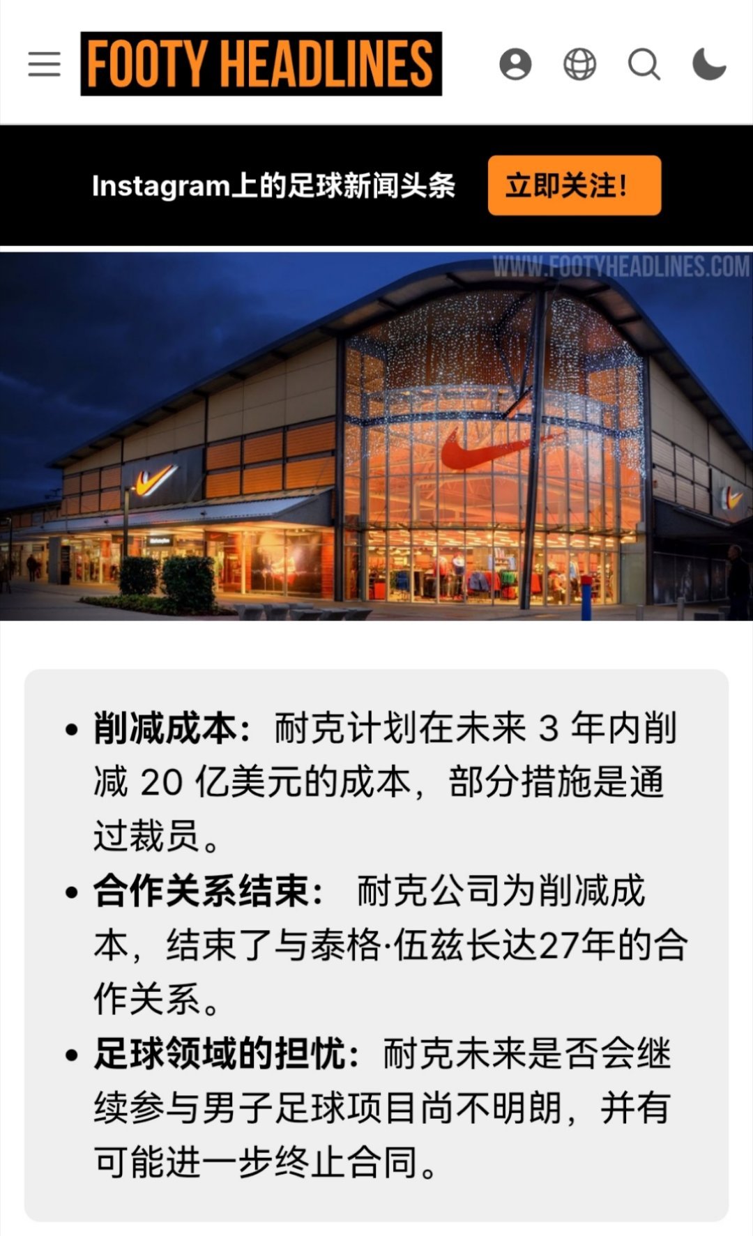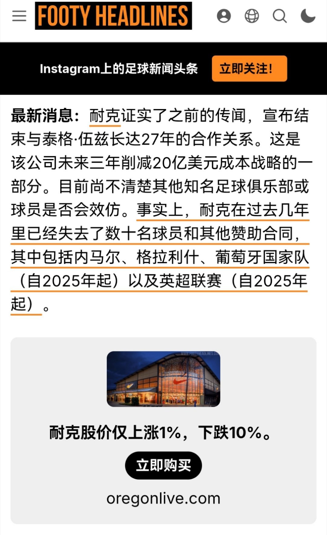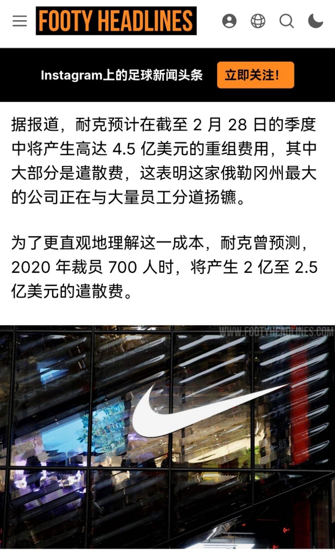 C罗 有关耐克和 C 罗的传闻其实和耐克自身战略规划有问题3 年削减 20 亿开支,大裁员终止以老虎伍兹为首等大批球星的合作关系不断取缔和男足相关领域球队以及联赛的合作说白了,耐克已经不想再玩足球了,继续姆巴佩哈兰德合作只是表明自己暂时还不会退出市场。连英超都不合作了,但是依旧没胆说官宣终止 C 罗的合作,毕竟影响力摆在这,但 C 罗退役后就不好说了,可能 C 罗转投彪马项目,也可能自己做CR7球鞋分支。