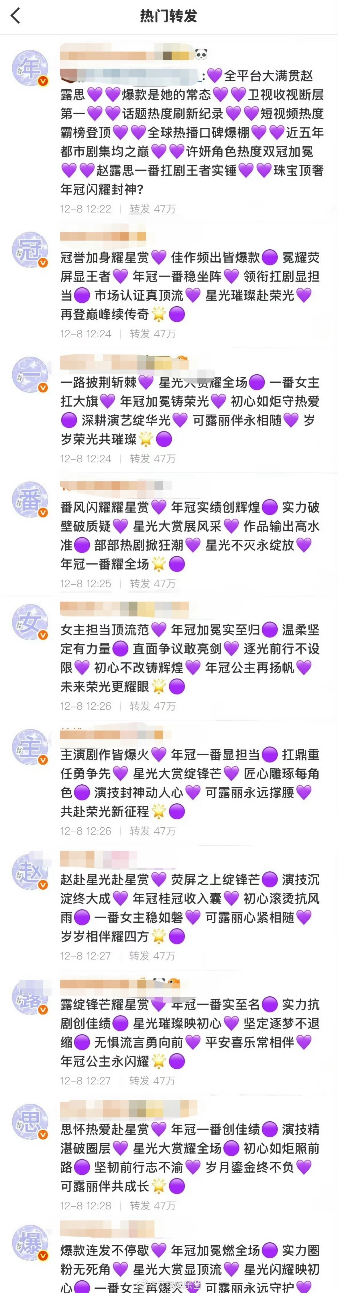 赵露思粉丝星光大赏转发排字,满满都是purplelove赵露思