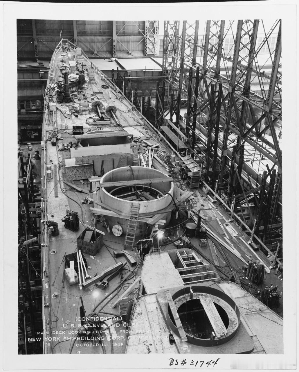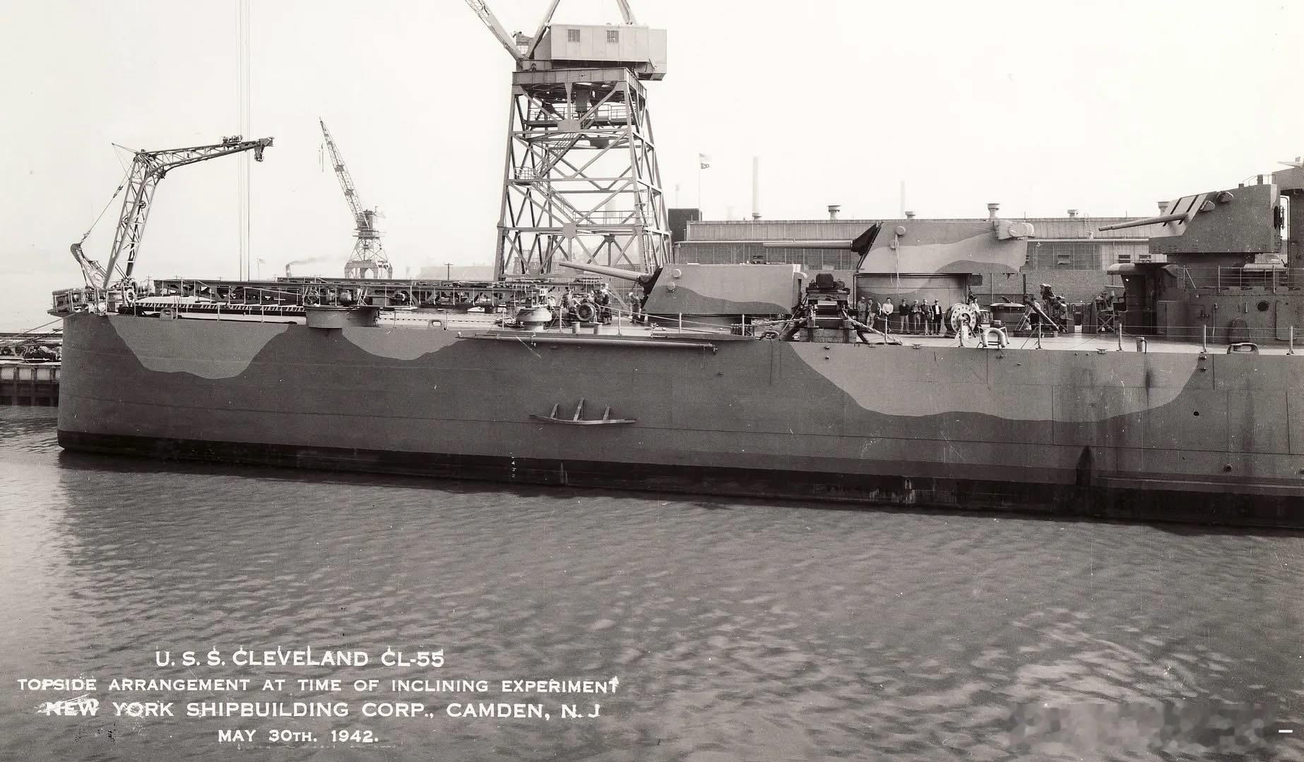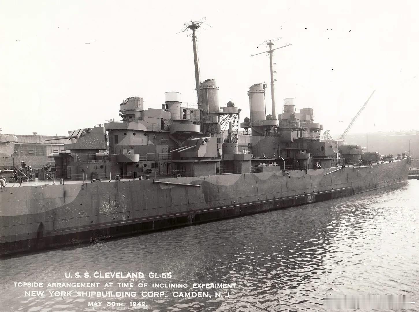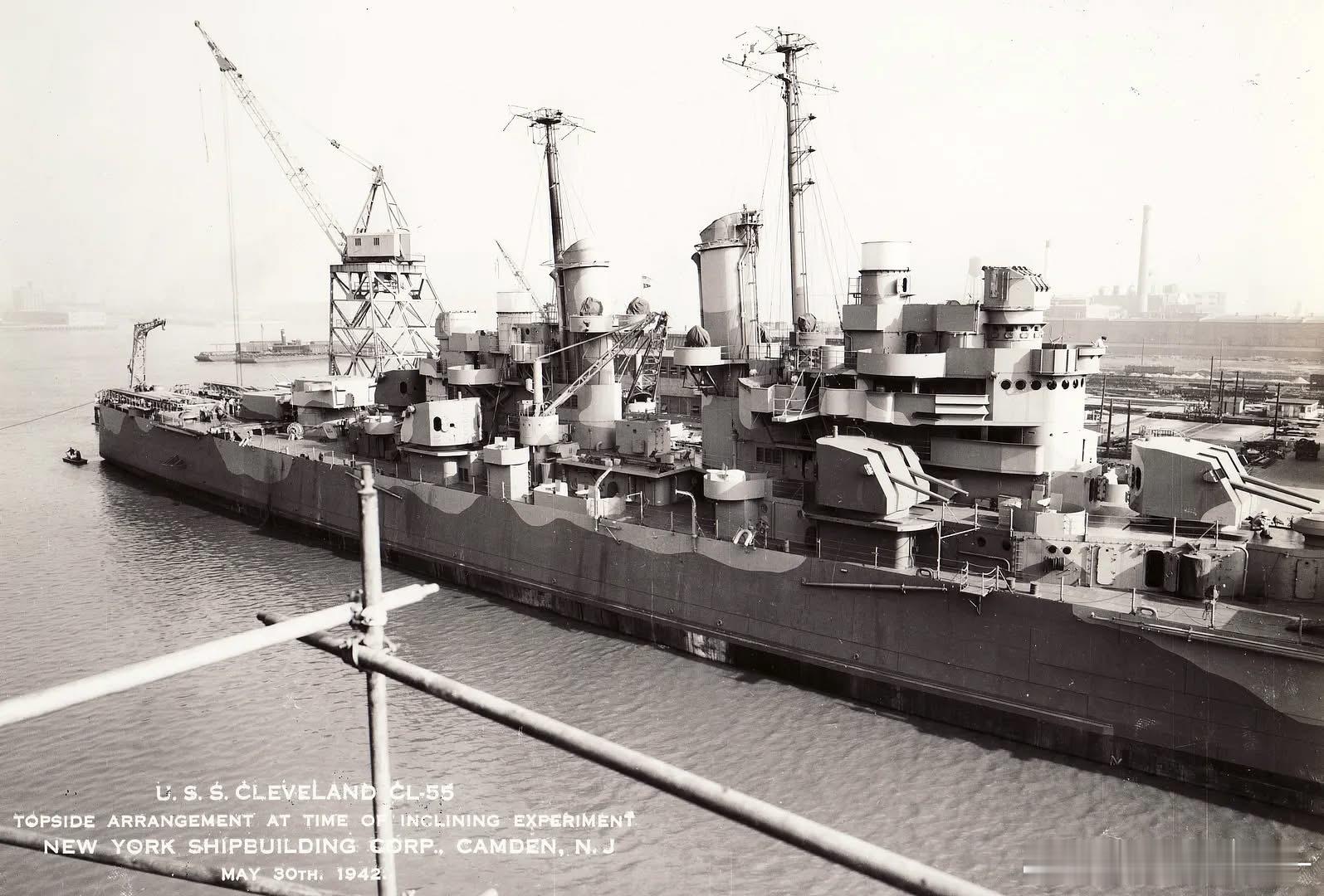 下水时拍摄的克利夫兰号轻巡洋舰舰体,摄于1941年11月1日的纽约海军船厂(图1);图2-3是建造中的照片,图4-8是舾装进入尾声的她,可见上层建筑和127mm副炮群,透着简洁强悍。克利夫兰级最终成了美军轻巡洋舰部队的中坚力量军事历史全触达中外舰闻每天认识一件兵器