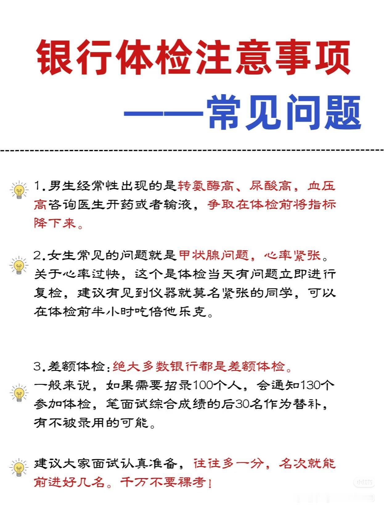 银行入职体检切勿掉以轻心!