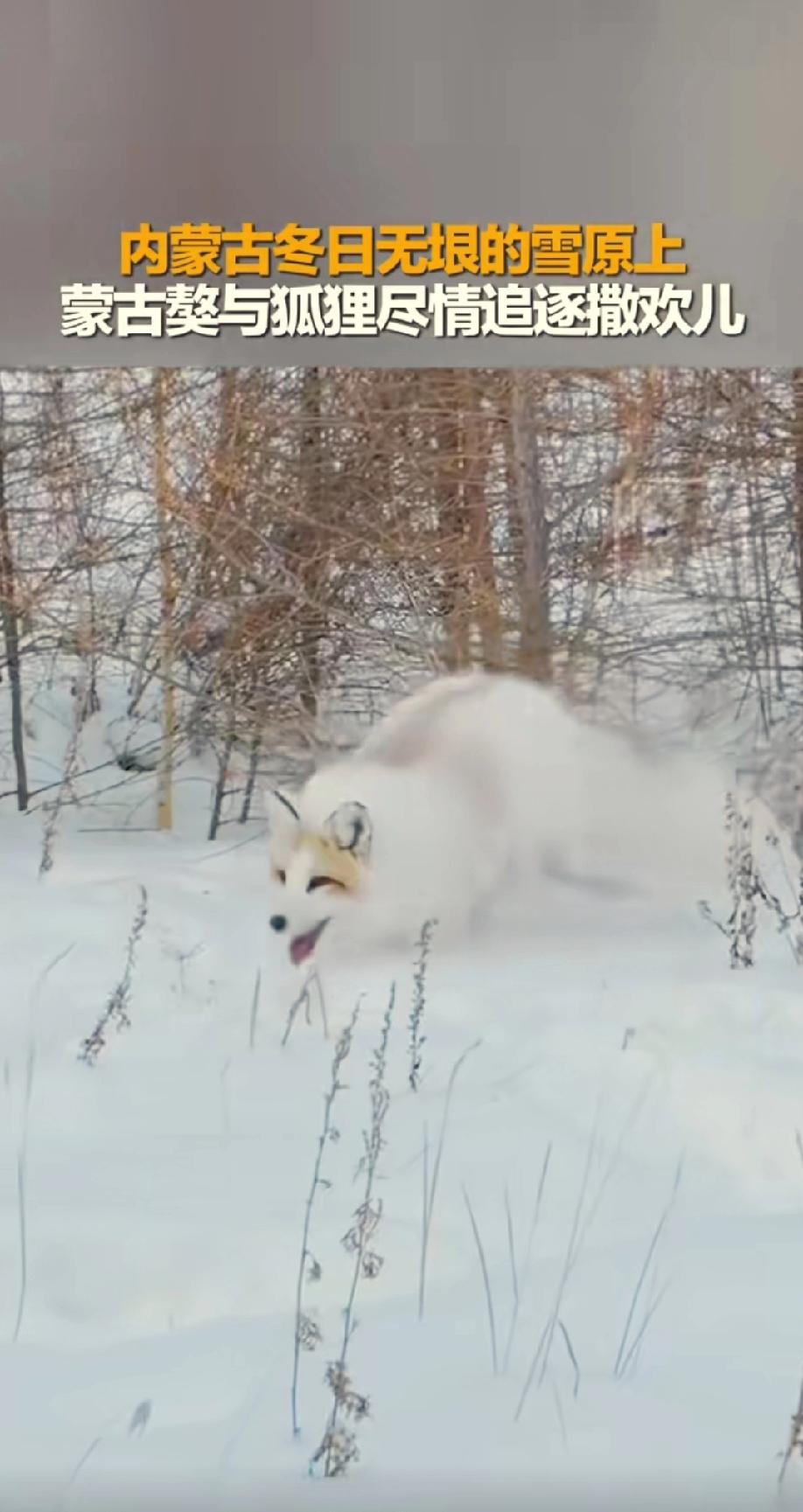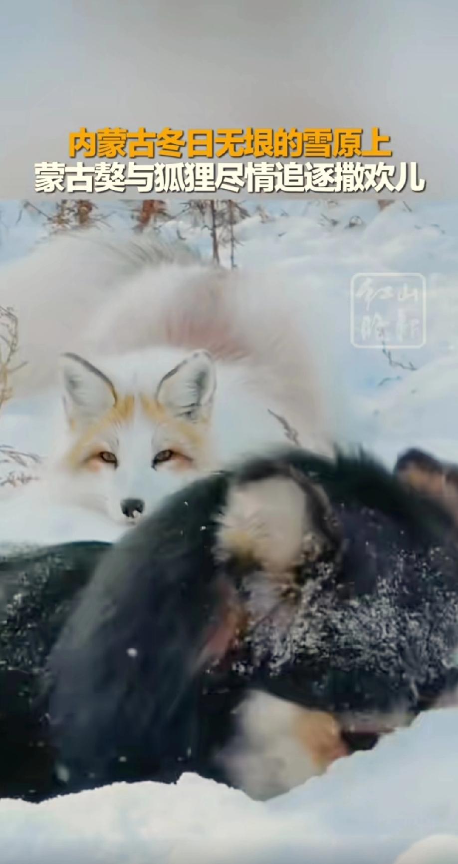 狐狸是真好看呀! 被红山晚报发的一段视频惊艳到了。 在内蒙古广袤无垠的雪原上,蒙古獒和狐狸在撒欢嬉戏。 我忽略掉了憨大个蒙古獒,完全被狐狸吸引了。它弯弯的眼,不笑也像在笑,一笑起来更迷人。 我理解纣王对妲己的迷恋了。 原来不光传说中的白狐狸漂亮,花狐狸也是很迷人的。我也想养一只。