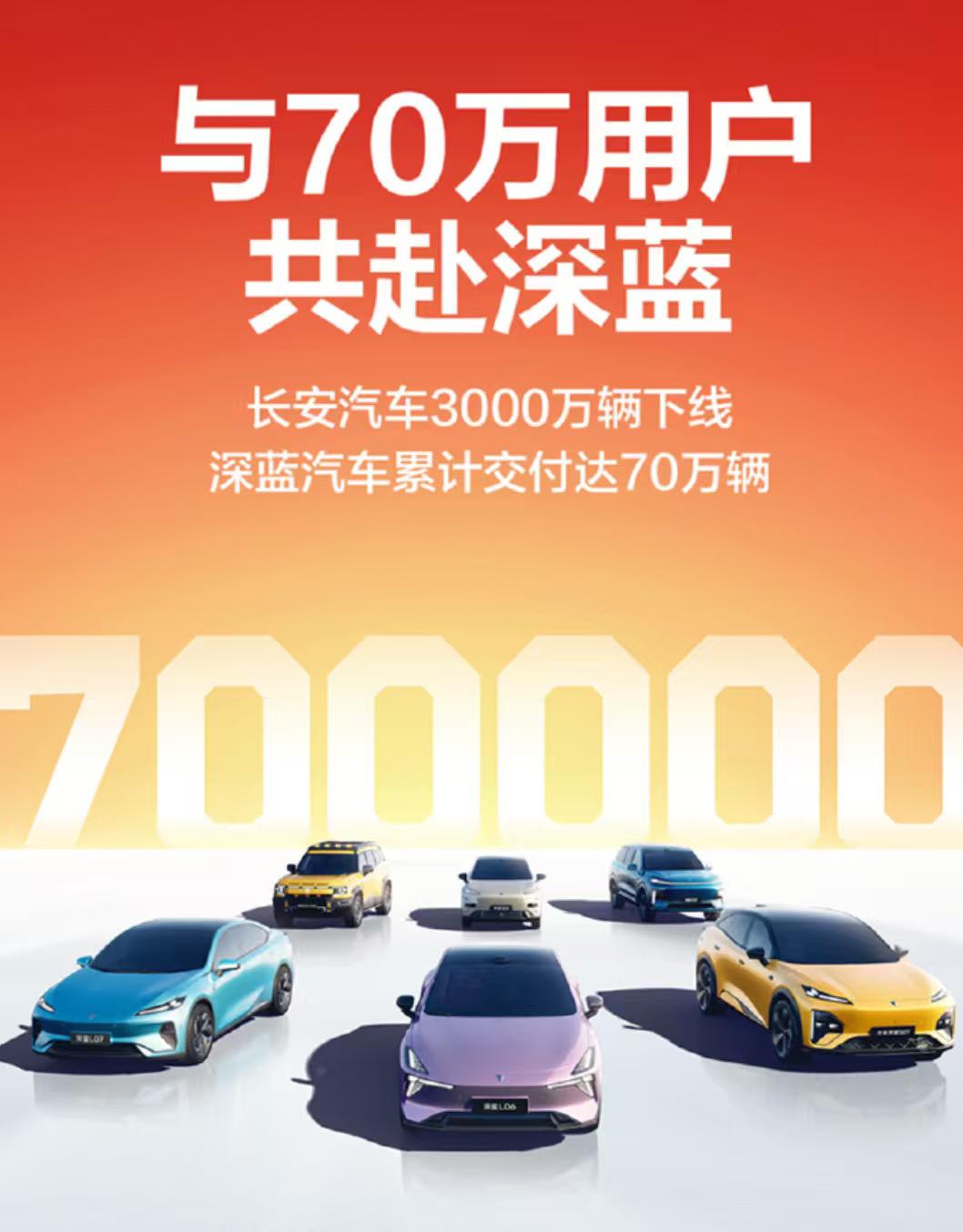 长安汽车3000万辆下线,深蓝汽车累计交付70万辆 长安汽车,长安欧尚,长安启源,深蓝,阿维塔......