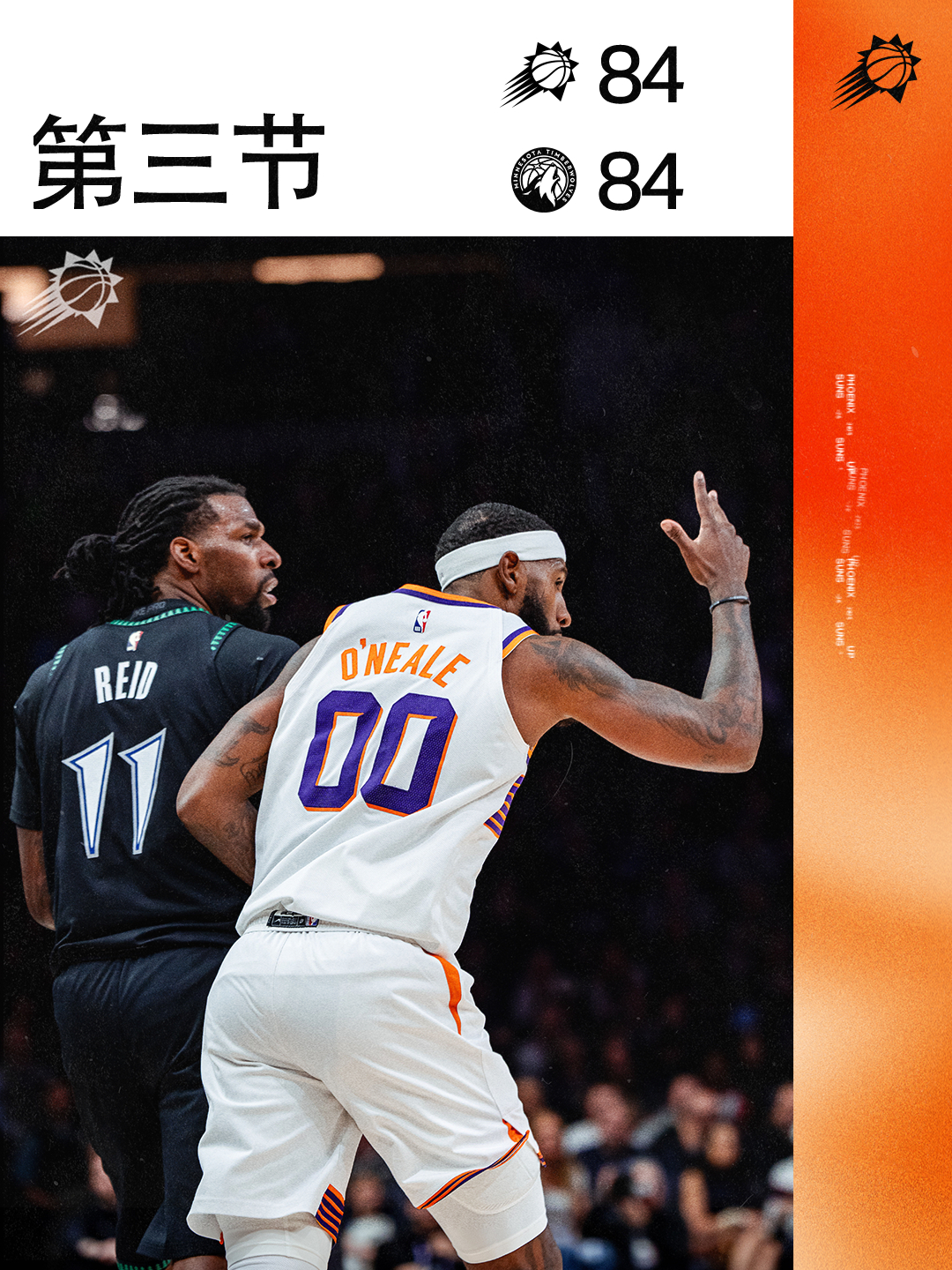 三节结束,太阳84-84持平菲尼克斯太阳旭日东升太阳vs森林狼