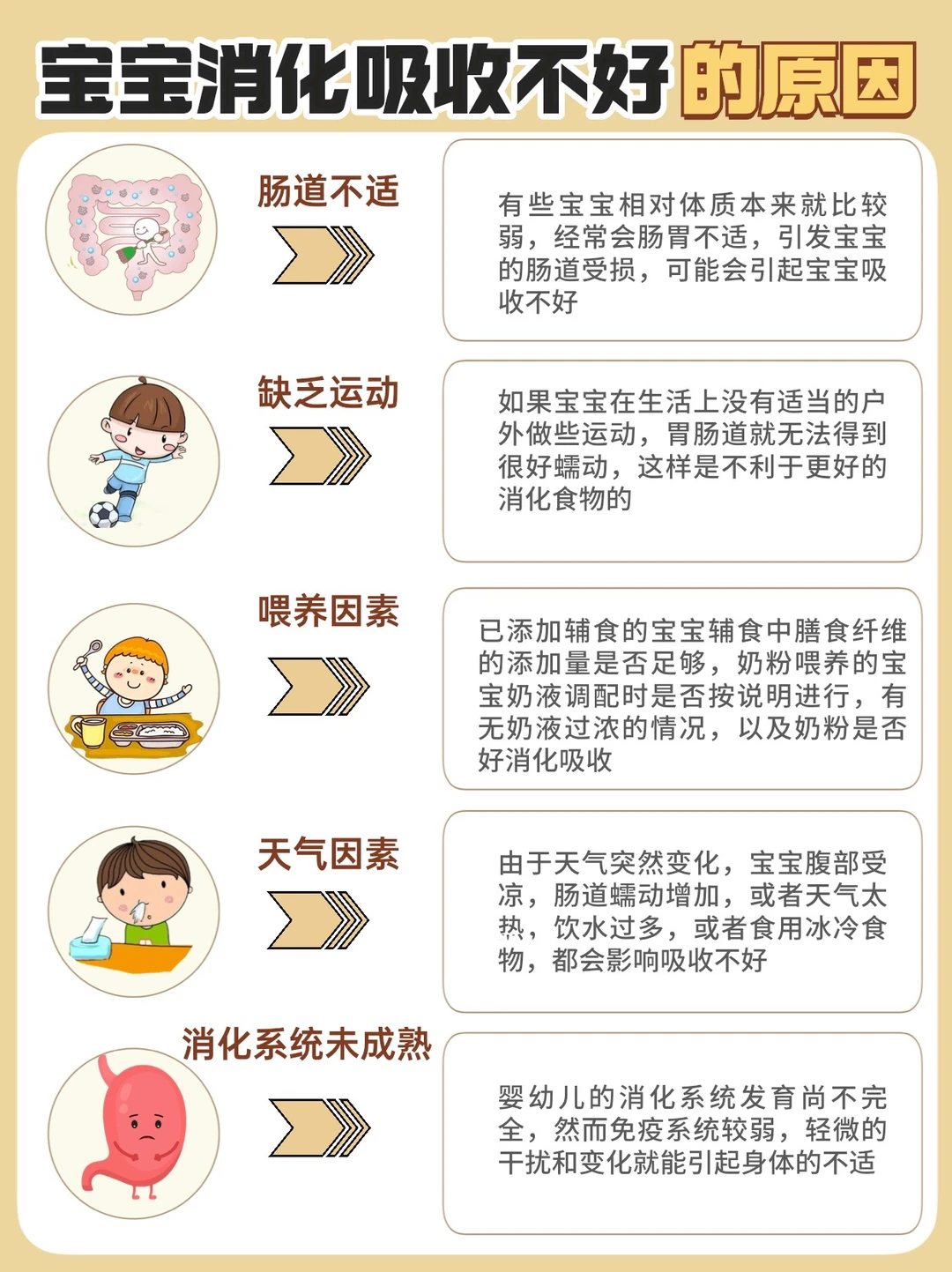 我家其实也有这种宝宝,吸收不好,不爱吃饭。我真的可以说追着跑的那种,其实大部分宝宝吸收不好都是体质原因。尤其一到换季,因为不同的季节可能有一些病原。比如我们说的病毒细菌,在不同的天气跟温度条件下会引起生病,所以每当季节交替时宝宝的身体是比较敏感的,最容易生病引起肚肚不适,导致肠胃功能紊乱,吃什么都不好吸收