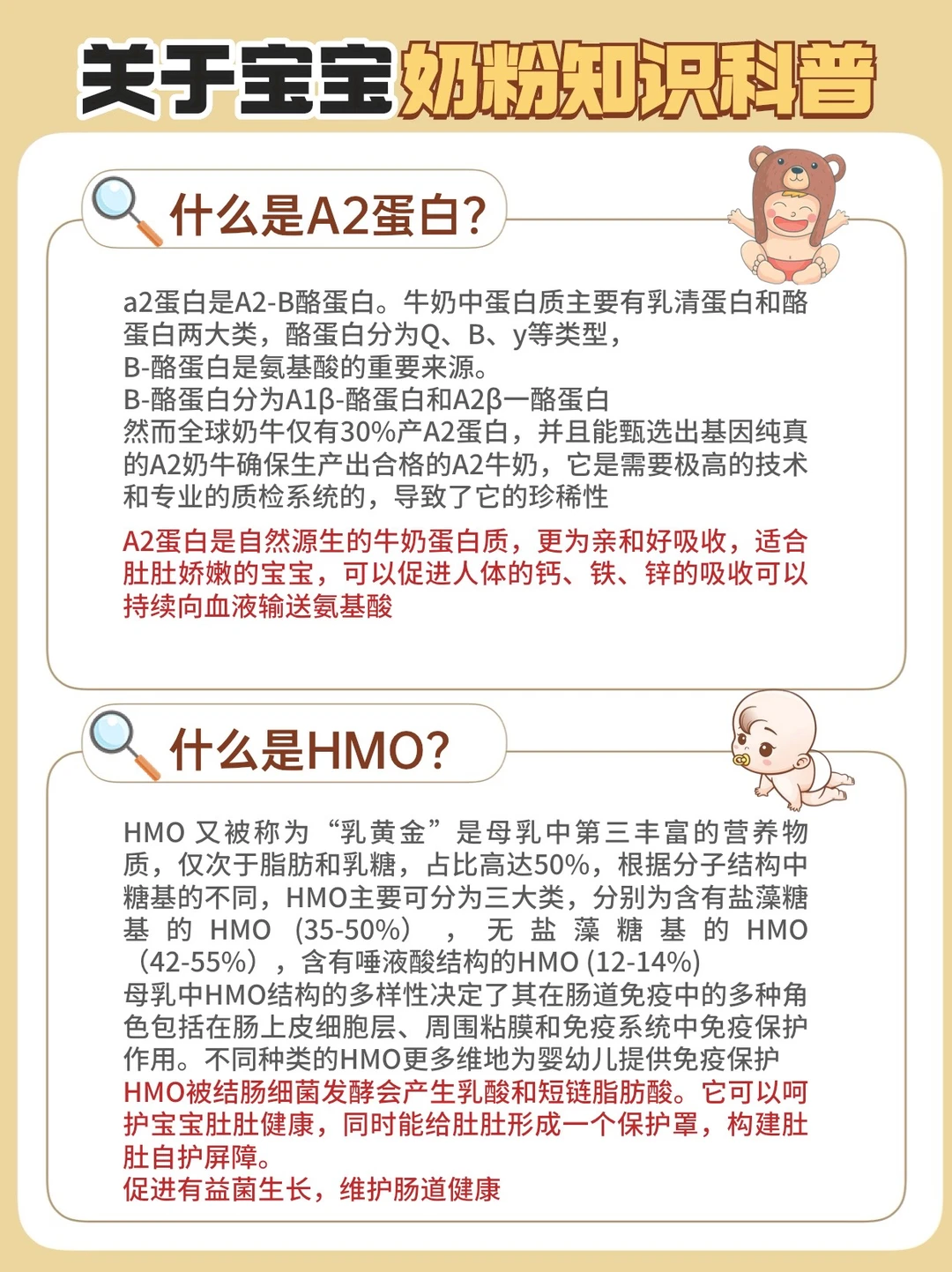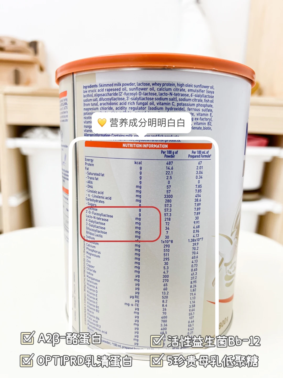 还添加了5种5HMO,在这里我要科普一下HMO它被称为 “乳黄金”它在母ru中的含量是乳铁蛋白的12倍,免疫球蛋白的6倍。HMO 在免疫活性营养中占比超过一半.是源ru中第一大免疫活性营养。能恩A2奶粉有5HMO,科学配比,可以强化宝宝自身的防御系统,提升自护力。宝宝奶粉只关注吸收是不够的,宝宝的肠胃也要被保护。俗话说得好,强强联手,才是👍