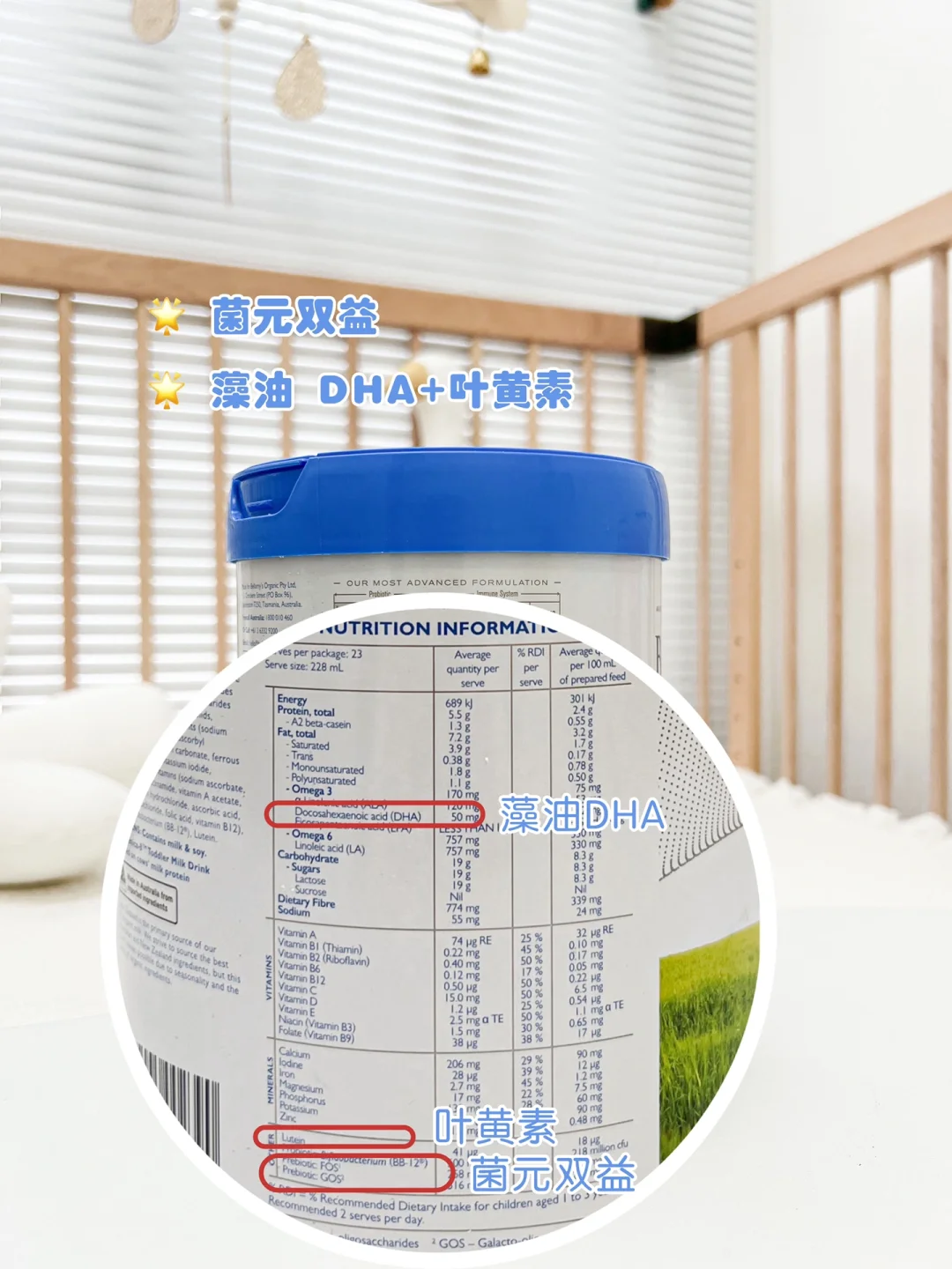 其次,这款奶粉还是天然源初的A2蛋白配方,致敏性较低,亲和宝宝肚肚,对于肠胃娇弱、转奶期、容易小敏感的宝宝非常友好。配方里我看到还加了菌元双益组合,活性益生菌+双重有机益生元。自从喝了贝拉米,憨宝肚肚也不胀了~胃口明显变好,吃饭都香了~还有藻油 DHA、叶黄素,他现在都能从10认到20了😊,我就教过他一次,没想到就记住了