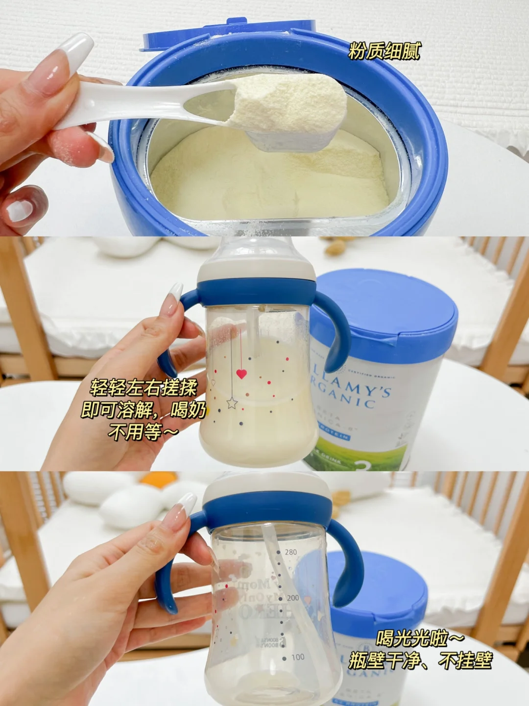 👉幸好发现的早,我连忙在宝妈群里咨询,一个宝妈给我推荐了有机奶粉,说是有机的成分更纯净,她家宝宝吃了之后明显适应多了。也是经她科普我才了解到有机奶粉比普通奶粉的质检更严格,更加安全和天然,没有任何人工添加剂和抗生素等,成分是很纯净低敏的。营养高口味还清淡,比较适合我们家宝宝的体质,不容易刺激到他的敏感肠胃。她家宝宝在喝的是贝拉米有机A2奶粉,说是有机奶粉中的👍,我去做了些功课发现确实不错。贝拉米是澳洲只做有机的大品牌,还是澳洲婴幼儿有机奶粉市场里的🔝,这个实力我还是比较放心的。
