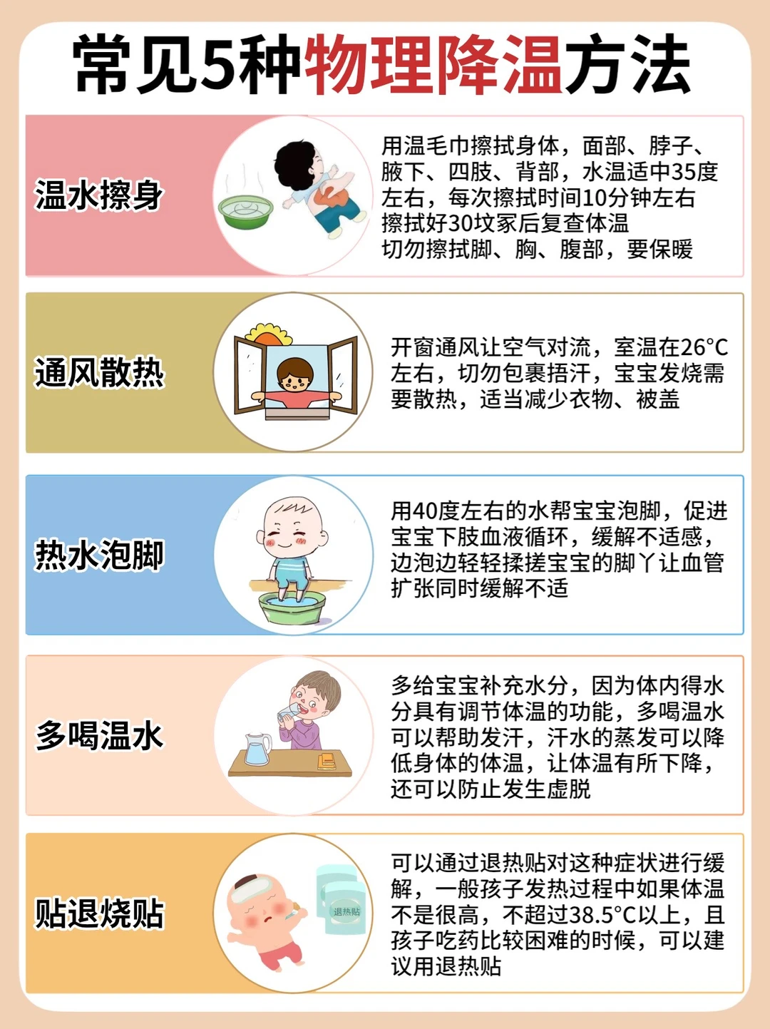 👉👉高热持续期,千万不要给宝宝捂太多,这样反而会使体温不降只会上升,严重会脱水、抽搐,要少穿、少盖,有利于散热。若体温超过38.5°C需要使用退烧药治疗(最好是不要交替使用退烧药)