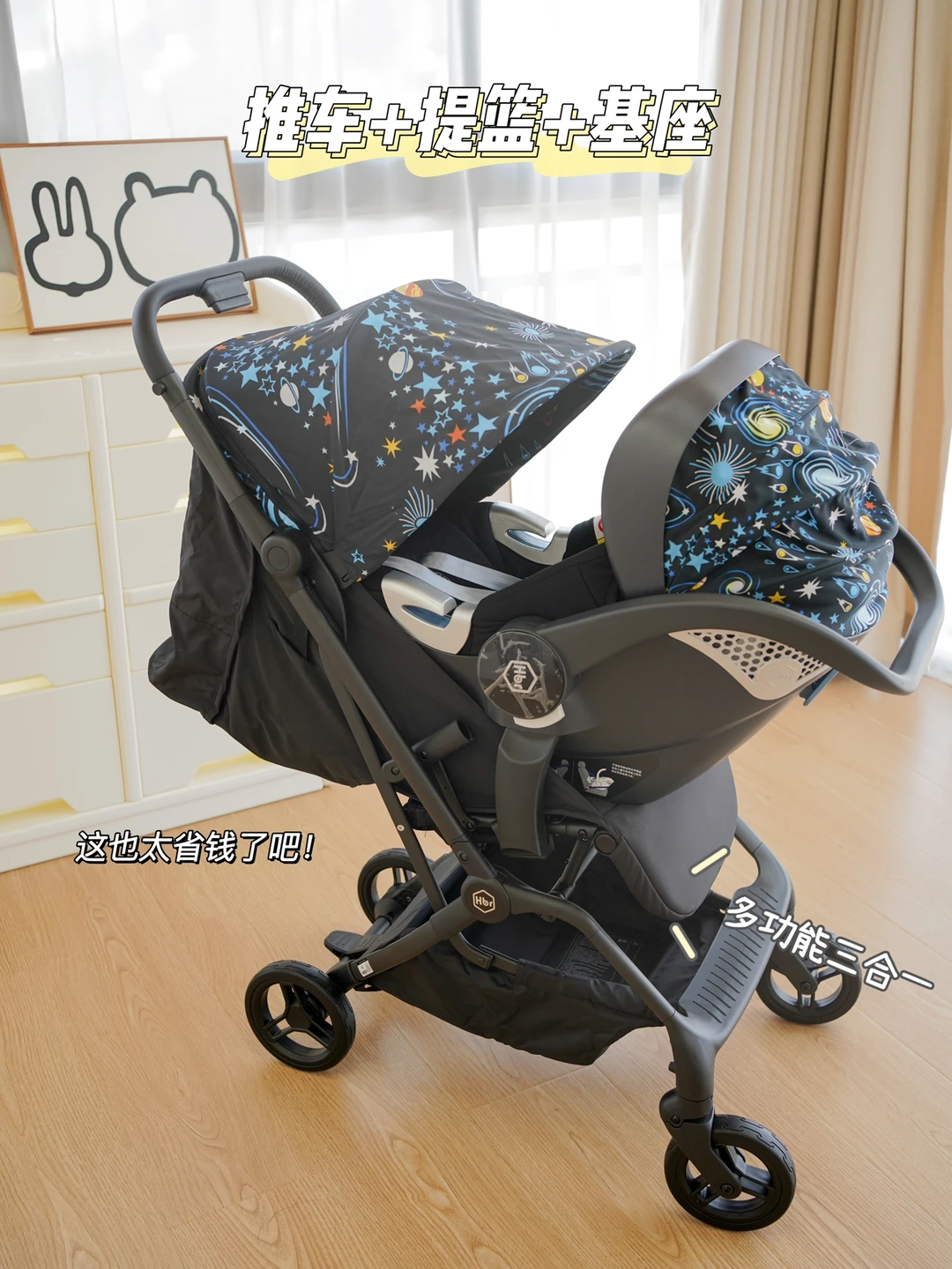 √推车+提篮+基座可以让宝宝睡眠不间断,又可以做安全座椅,又可以当做推车,还能直接挎着提篮去室内,