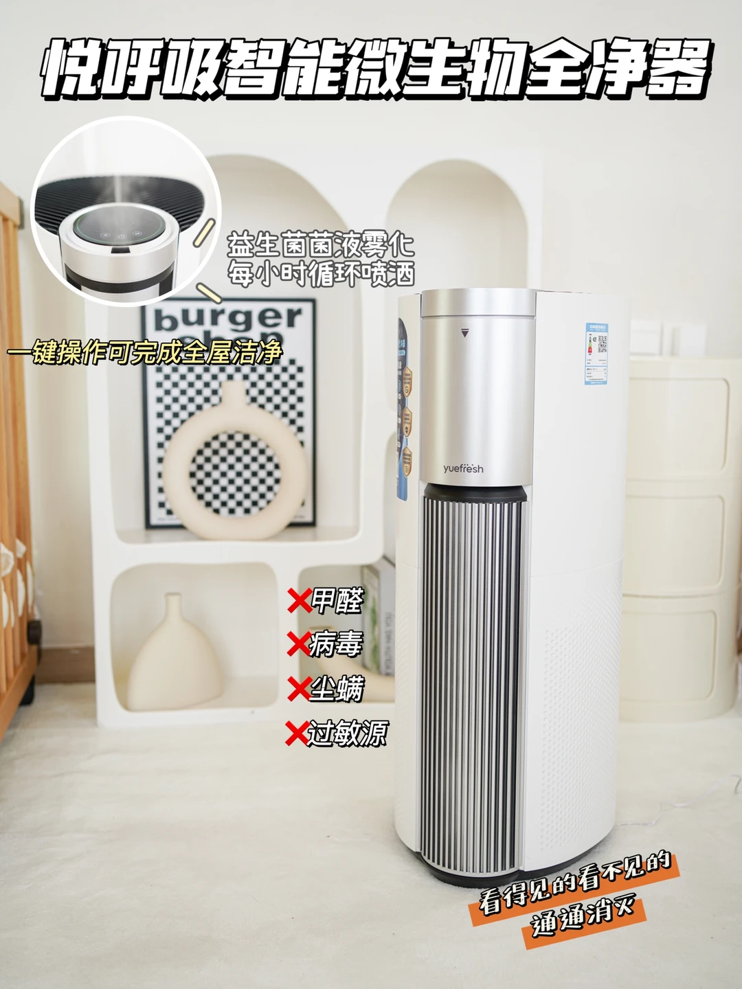 💁♀️像现在我家用的这台悦呼吸智能微生物全净器!它吸引我的是益生菌净化功能,它喷洒出来的益生菌可以随着空气流动家里每个角落,包括沙发背部、床底、地毯等在内的角角落落,不仅能覆盖物体表面,还能深入织物内里展开净化,那些平时我们看不见的细菌、尘螨、病🦠都能全面深度净化,不仅有效抑制室内病🦠,还能有效消除过敏原,让每个人的家,都能更洁净,更健康,提升有免疫力的家居环境