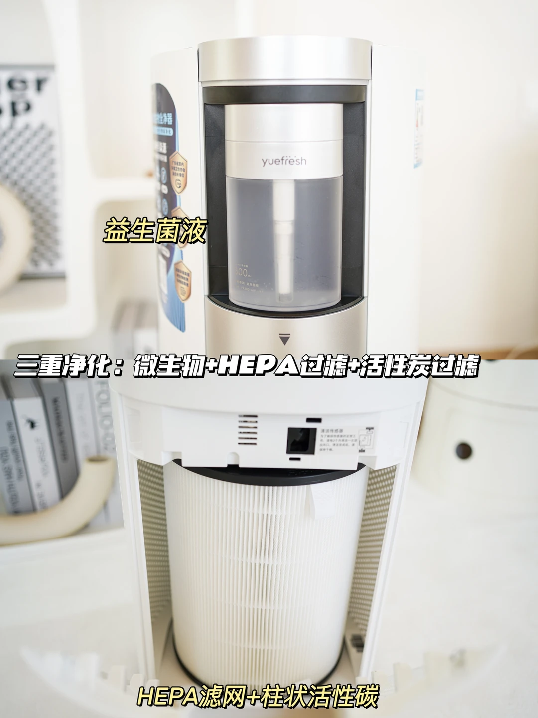 因为是采用了HEPA过滤+活性炭过滤+微生物净化三种原理净化,所以净化效果更加全面,而且益生菌的繁殖范围理论上是没有面积限制的,所以一台就可以实现全屋净化,YYDS,比我们平时自己到处喷洒酒精轻松多了,而且对人体还没有刺激伤害