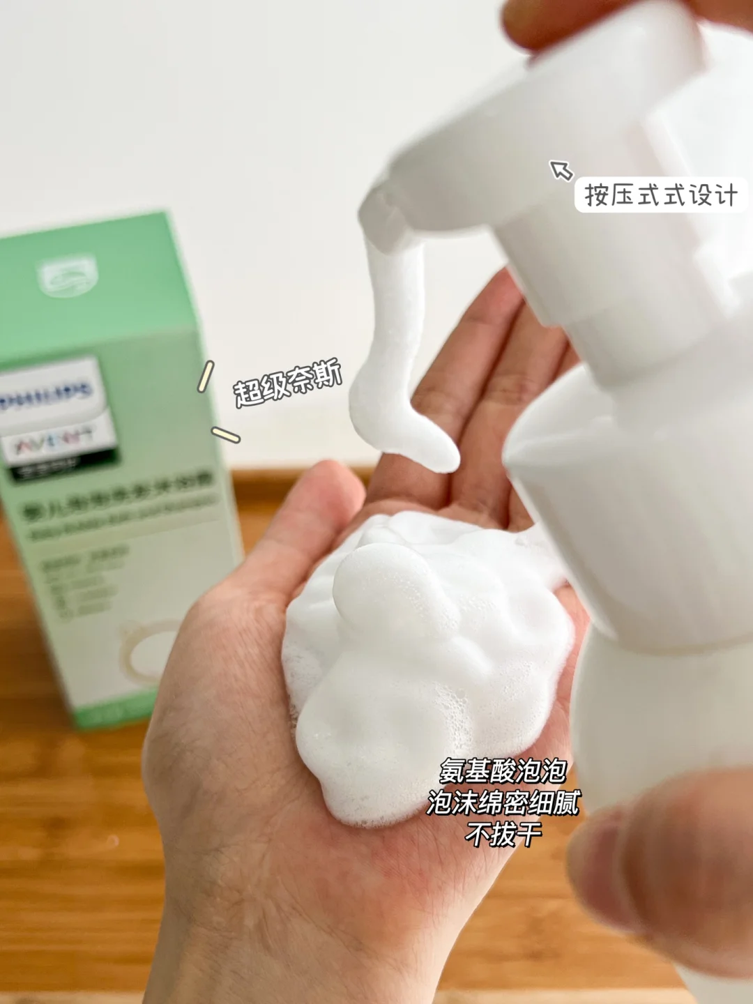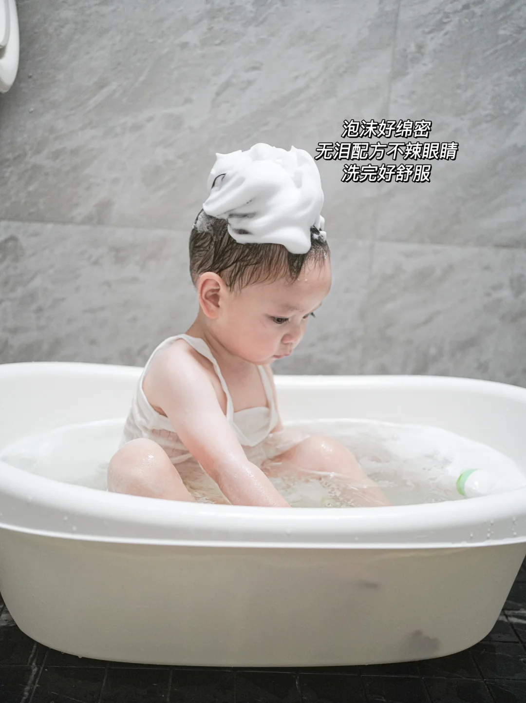 亲肤无泪配方很温和,我家娃之前很抗拒洗头,因为被刺激到眼睛了,现在换成了无泪配方的,洗头就变的很配合啦~娃变得不再抗拒了,慢慢就爱上了洗澡澡~泵头按一下就是绵密的泡沫,不用搓又好冲洗,娃特别喜欢泡泡🫧越玩越开心,洗澡多了一份乐趣,宝宝爱洗澡澡,我也轻松很多!洗完身上有股淡淡的清香味~总之,体验感很不错~