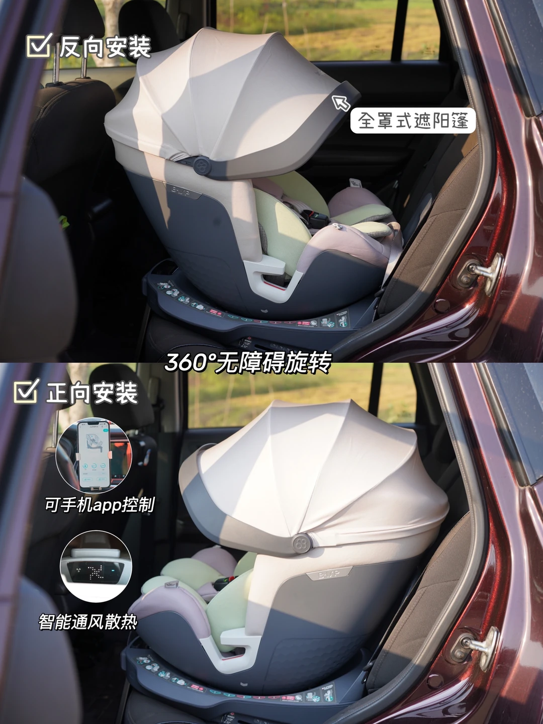 👉安装方式是isofix+可折叠支撑腿+抗翻转板,黄金三角稳固支撑系统,能使安全座椅更牢固,行车时,不会晃动,同时单手360°旋转肯定是不能少的啦,90°悬停,方便麻麻们抱娃上下车,不会累腰哦👍