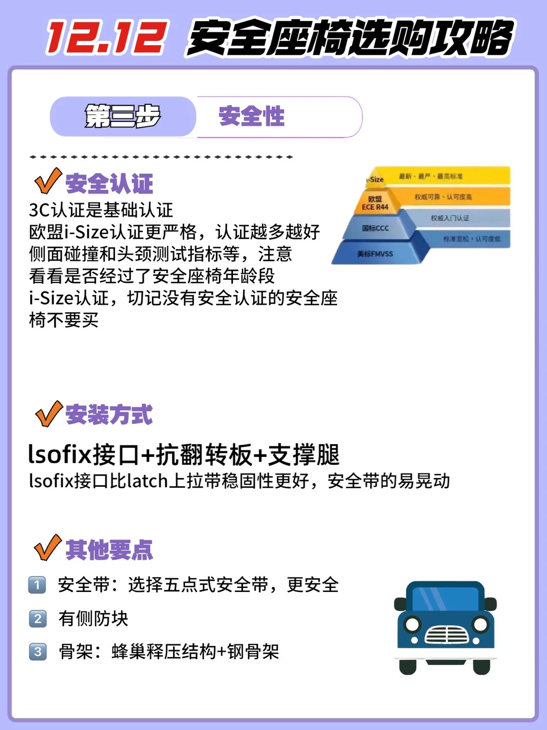 ✅通过了0-7全岁段I-size认证+国标3C认证,满足宝宝出行的刚需阶段