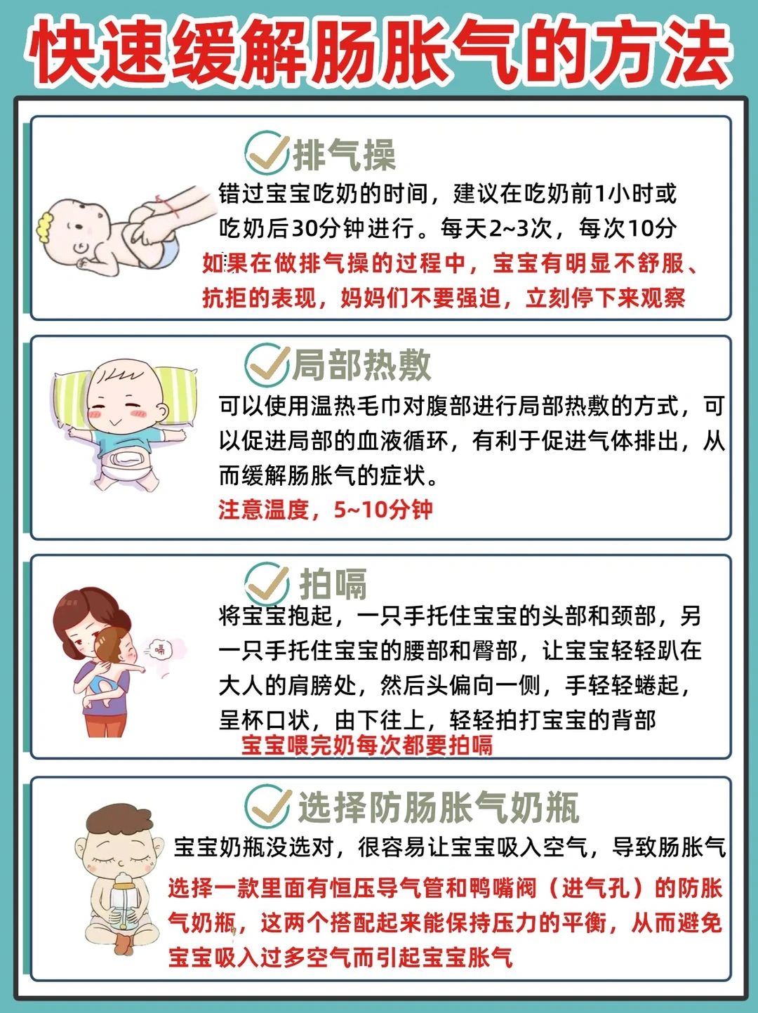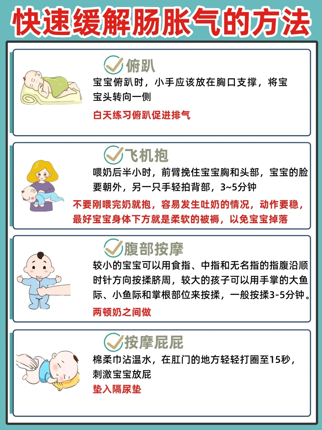 💁♀️了解完宝宝肠胀气原因后,一定要知道快速缓解肠胀气的方法: