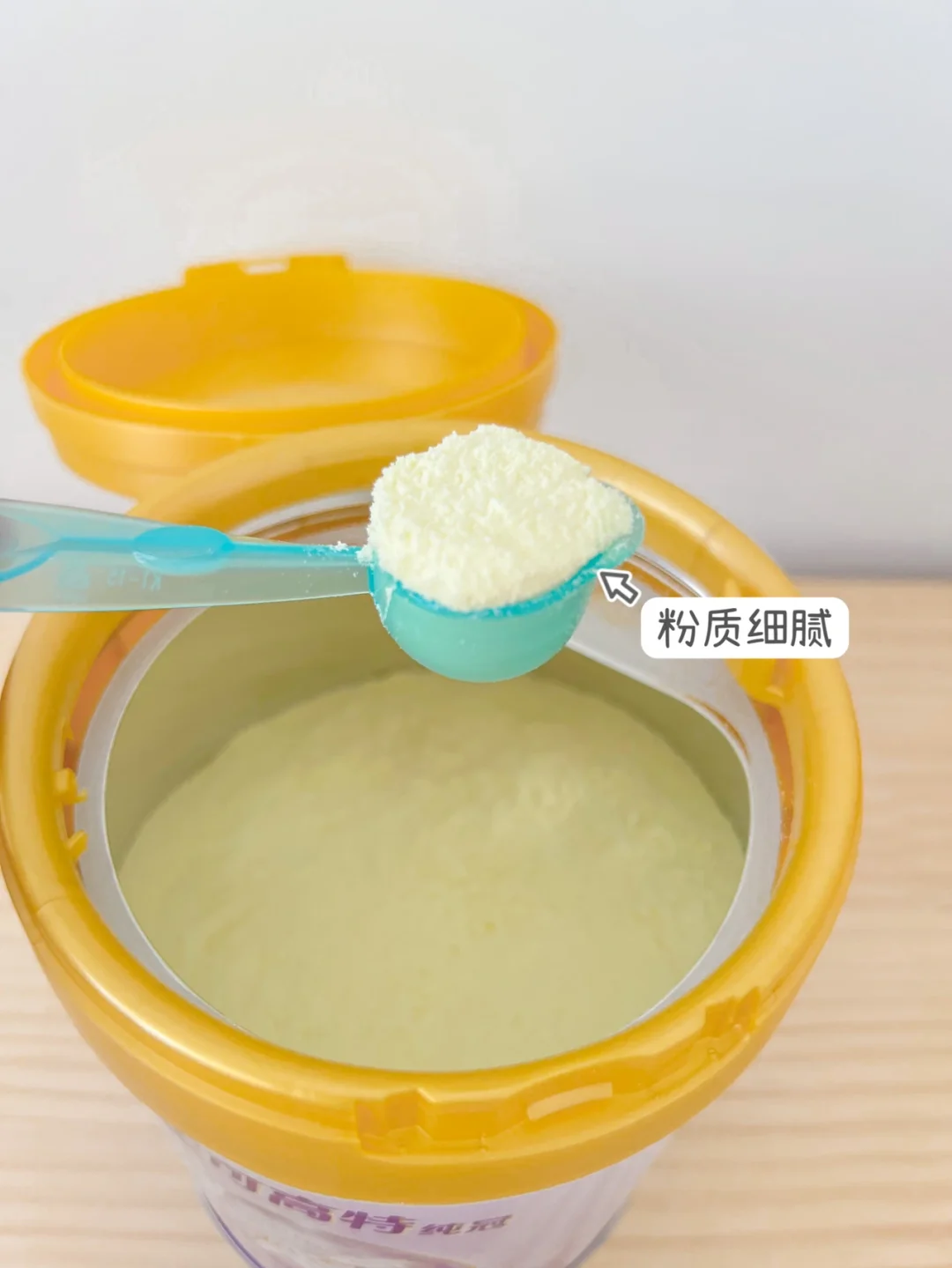 要选颜色是乳黄色,粉质细腻不挂壁的,美赞臣纯冠羊奶粉粉质细腻不挂壁,呈天然乳黄色,闻起来还带有淡淡的天然奶香味, 宝宝 爱喝,这个接受度可是超乎我的想象的~