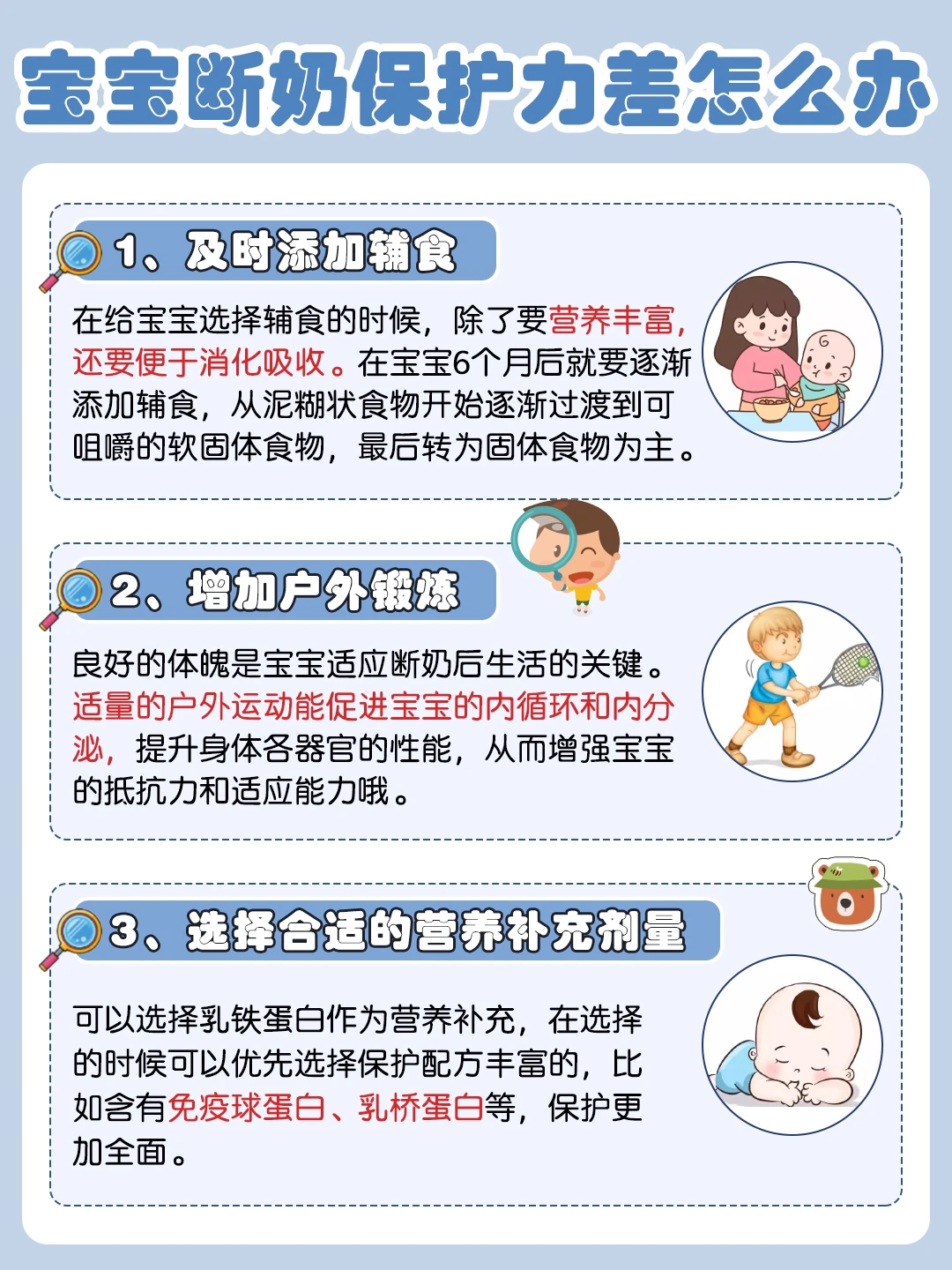 那是因为初乳中有很多成分比如:乳铁、免疫球蛋白、乳桥蛋白LPN、益生菌,断奶后没有及时的补充,所以宝宝就很容易保护力断档