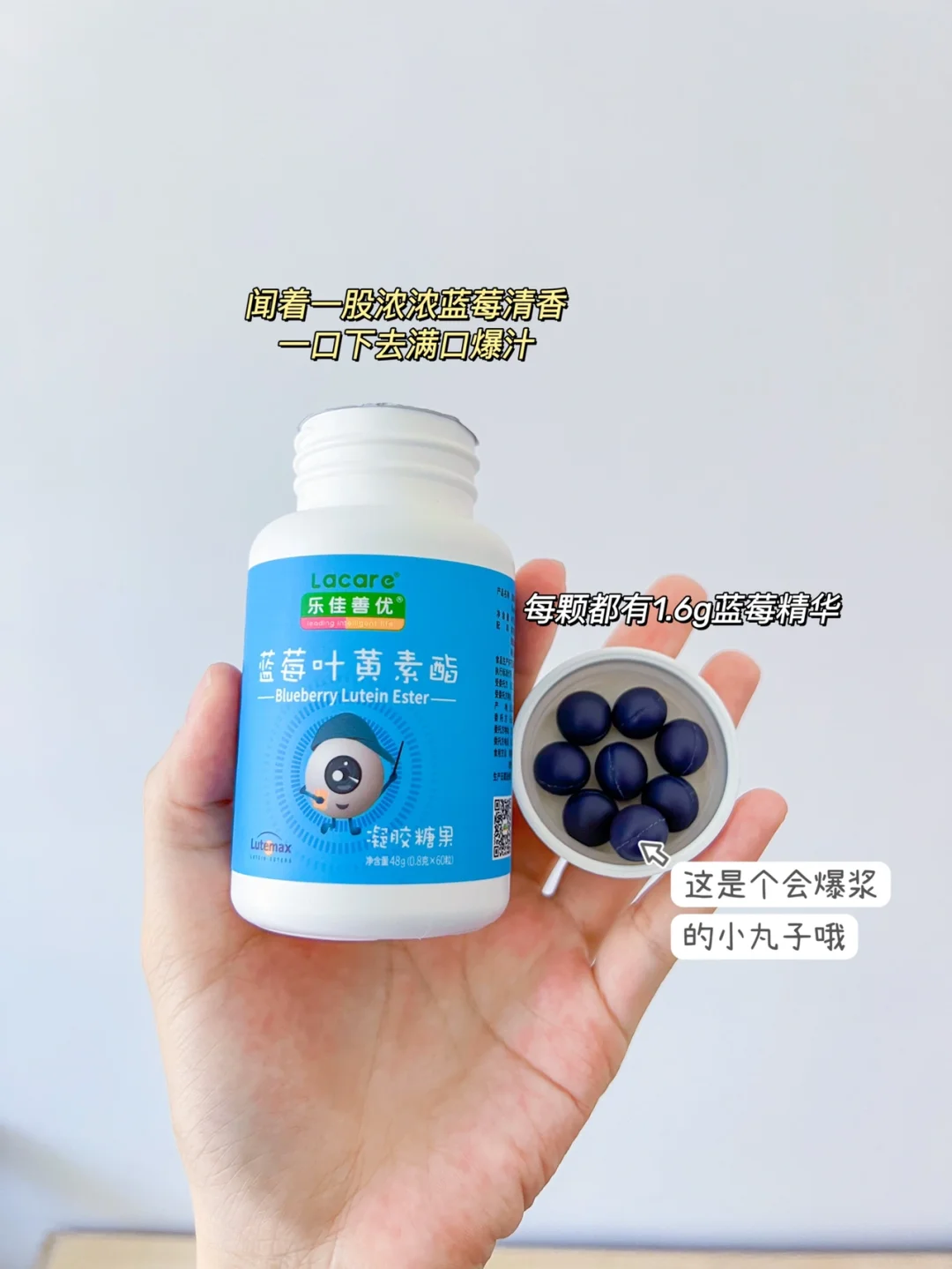 作为一名职场妈妈👩 白天工作晚上到家还的哄娃! 经常把娃哄睡就到了10点11点了! 还的准备第二天的工作以及白天没做完的工作! 熬夜对我来说真的是很频繁的事情! 老公实在看不下去给我买了这个乐佳善优蓝莓叶黄素酯凝胶糖果! 这个乐佳善优爆浆小丸子 一口咬下去,一股蓝莓橘子果汁味! 酸酸甜甜的,长得就很像小蓝莓, 一天3粒就好! 而且不含白砂糖,3岁以上的宝宝也可以吃哦! 里面的叶黄素酯是叶黄素的另一种存在形式哦! 不论是打工族,低头族还是学业重的孩子都可以吃! 尤其熬夜党这个真的太需要了!