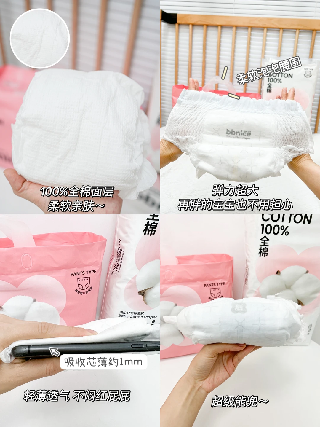 3️⃣选知名品牌,首选做婴儿用品的专业品牌👉👉二月宝宝现在用的这款全棉时代·bbnice棉尿裤,完美符合标准!