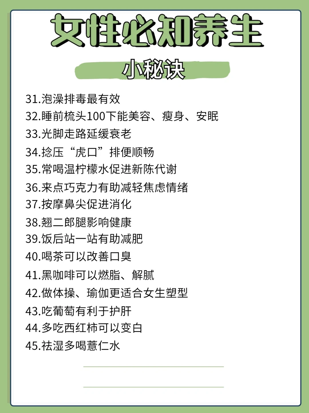 💁♀️所以我们要更好的养生,女性真的是要“精养”爱自己多点比什么都重要。才有精力更好去爱宝宝❤️
