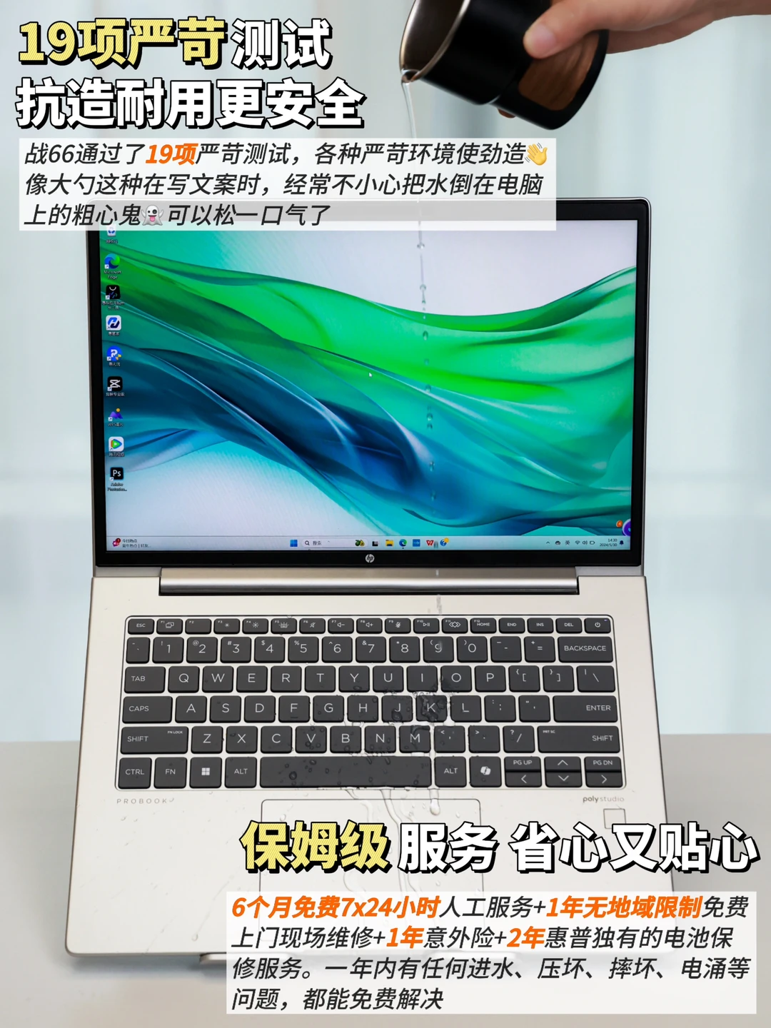 战66还通过了19项严苛测试,日常磕碰、不小心溅水等都不会影响电脑正常使用。