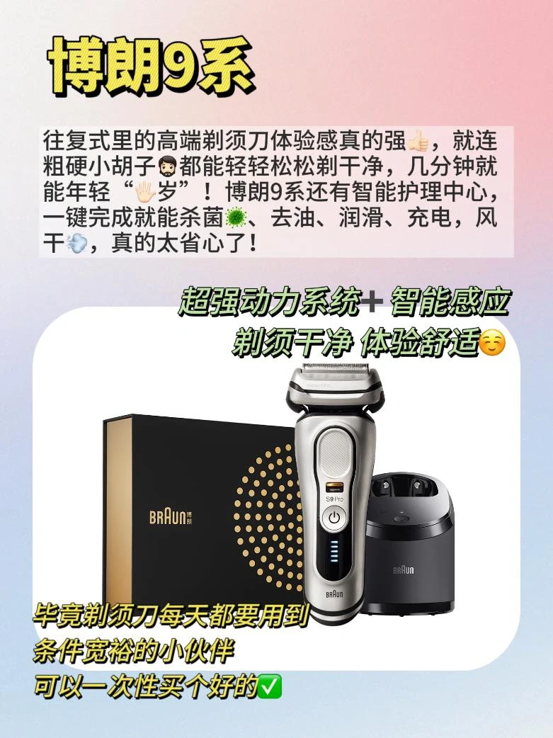 剃须刀作为男生的刚需✅用品,有好的性能和颜值✨还是很重要的。像大勺我基本是每天都会用到剃须刀的,所以对各种品牌和类型的剃须刀还是比较熟悉🧐的。 根据大勺自己的使用体验和周围朋友的分享,大勺总结了6️⃣款超好用的剃须刀。 既有应对粗硬胡子的手动🪒剃须刀➡吉列引力盒、吉列极光刀、吉列热感剃须刀 又有方便省事😍的电动剃须刀➡ 博朗5系、博朗7系、博朗9系 看完还不知道咋选直接问我!