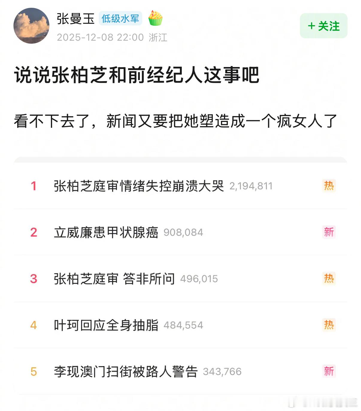 庭审结果还没出,张柏芝已经在热搜上成为了当庭发疯的疯女人……
