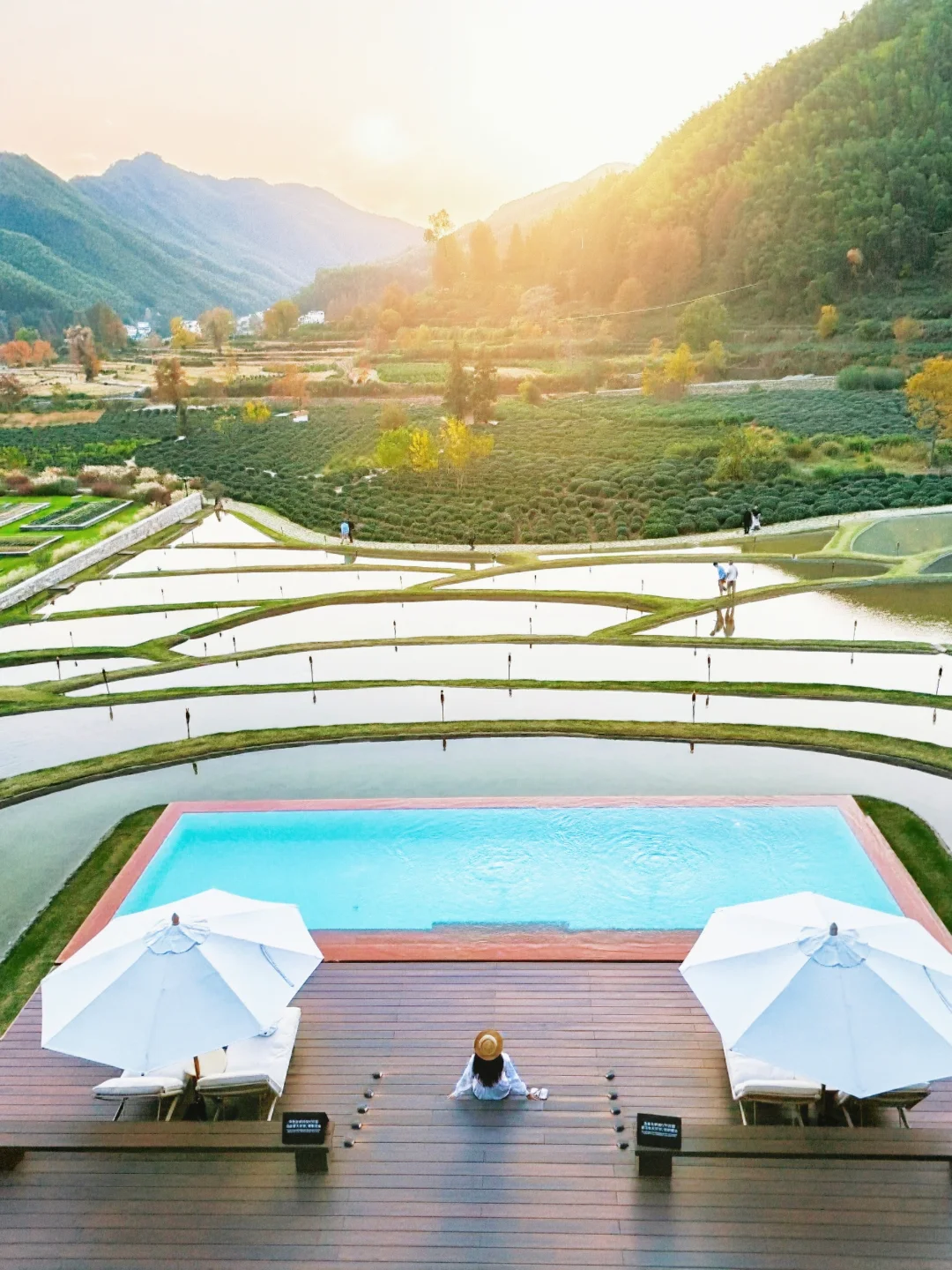①庄园离卢村观景台只有几百米,有小路直通,走过去十几分钟很方便