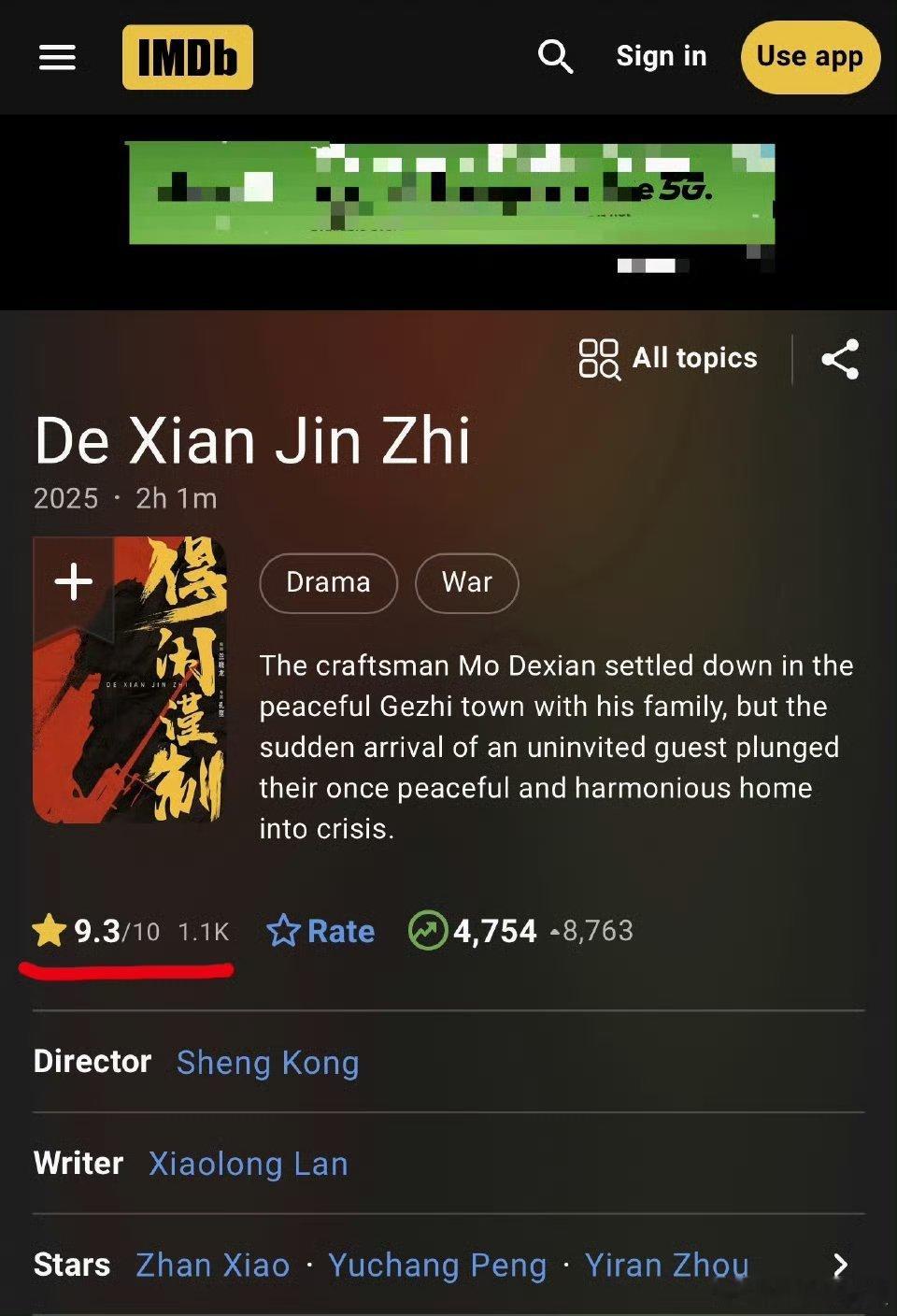 肖战《得闲谨制》豆瓣开分6.9,感觉低了啊口碑跟开分对不上IMDB可是开分9.