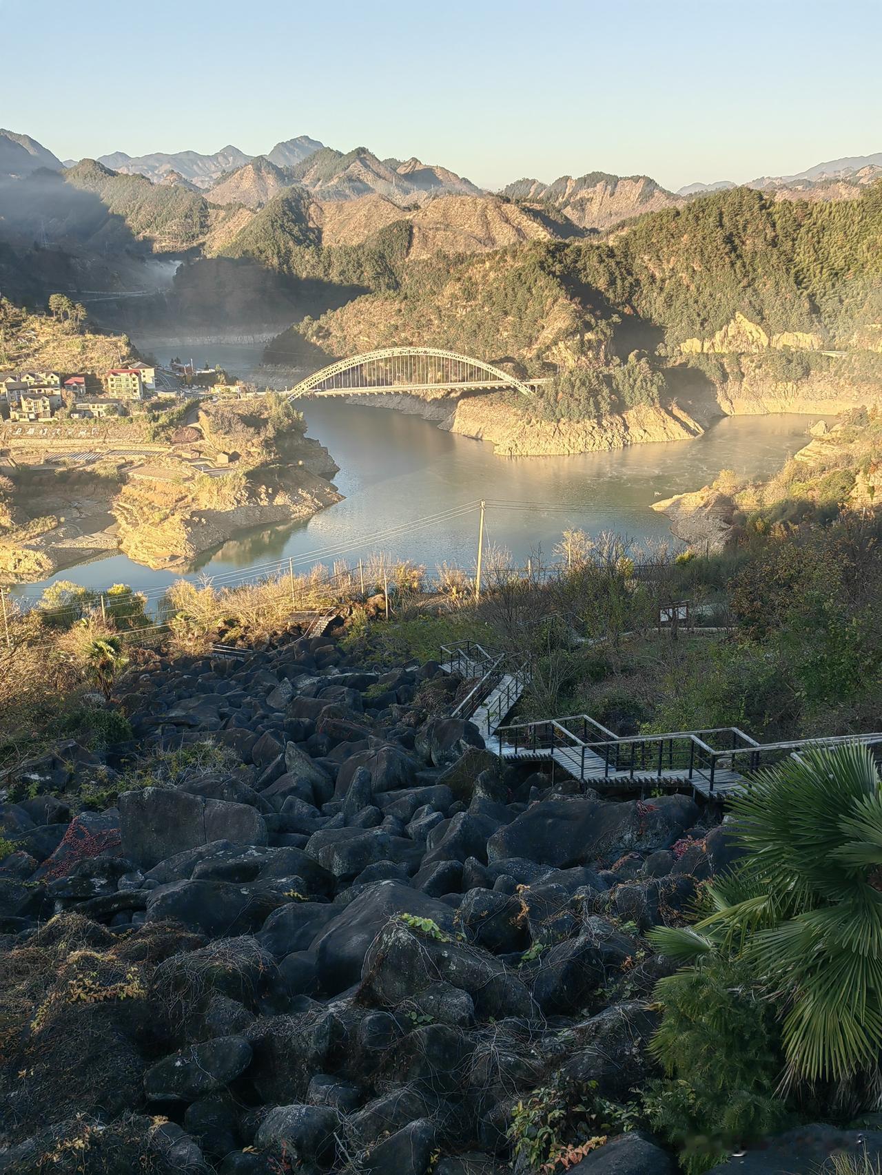 自驾浙西天路,必打卡的免费小众秘境,从天而降的神秘奇观-万年石浪群 杭州临安石浪村,秘境宝藏小村。 高德导航石浪村,村口有免费停车场。我们直接导航浙西大峡谷临湖山庄(住宿),停车场旁边就是石浪群入口。 石浪村村东山坡上,是一处万年石浪奇观,距今约300万年的冰川遗迹。巨大石块从山顶倾泻而下,层层叠叠如海浪翻涌,非常壮观。行走其间,仿佛穿越地质历史长河。 沿游览栈道,可近距离欣赏石浪群,最上方高处有观景台。站在巨石之上,迎着晨曦的薄雾,连绵的群山,碧波荡漾的水库,层叠的石浪,巍峨的华光潭大桥,,相互映衬,宛如一幅浓妆淡抹的水墨画,非常漂亮。 村内还有几棵树龄超500年的枫香古树群,有时间可去看看,建议游玩时间45分钟。图片为原创实拍。浙江小众旅行地 浙西大峡谷徒步 浙西天路自驾游