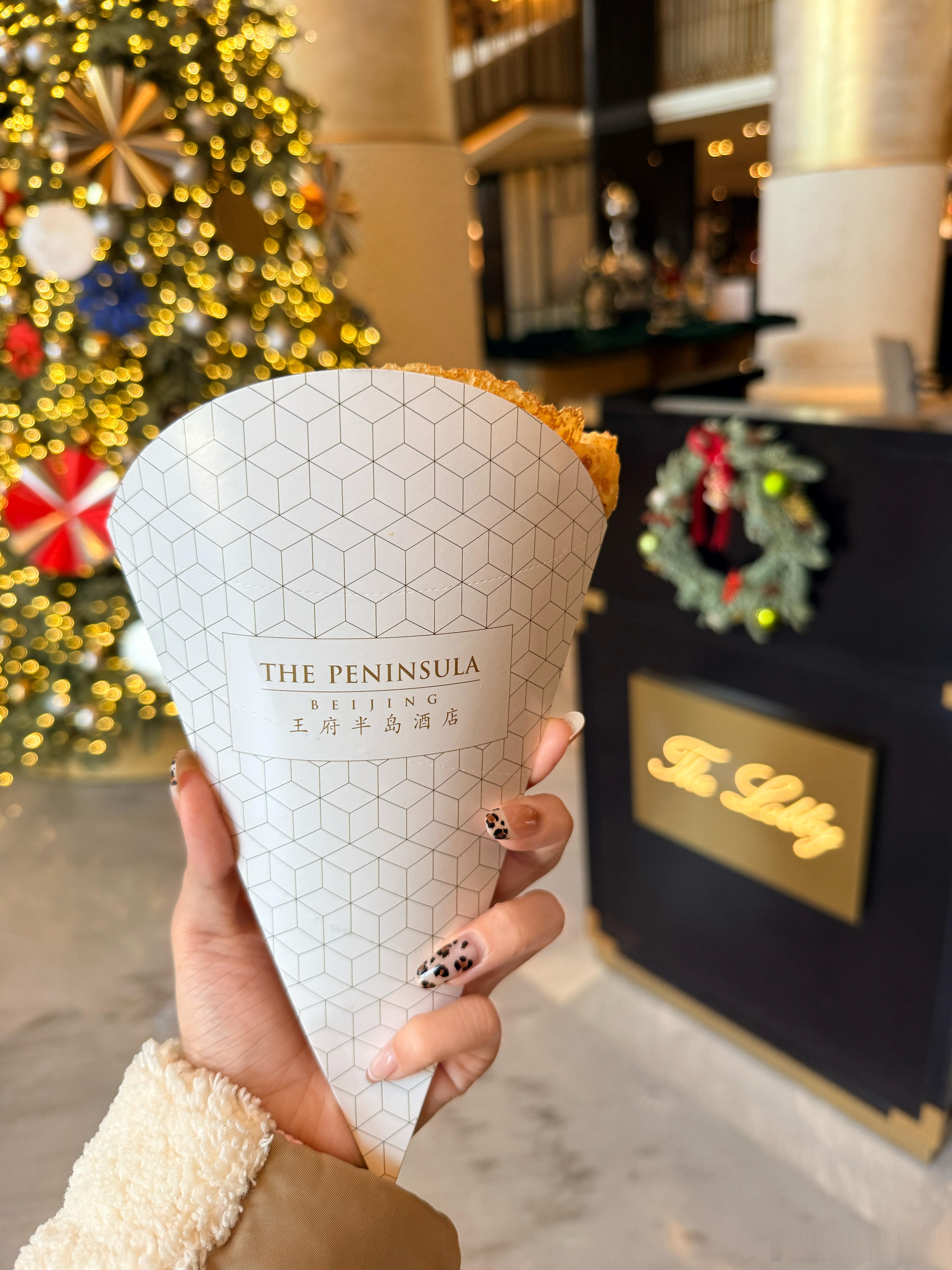 别人都在美美的吃着788一份的下午茶,而我在大堂买了一个45元钱的地道老法兰西煎饼果子,边啃边看别人穿着圣诞战袍拍照,我做的对吗?我的日常plog我的美食日记 北京·北京王府半岛酒店