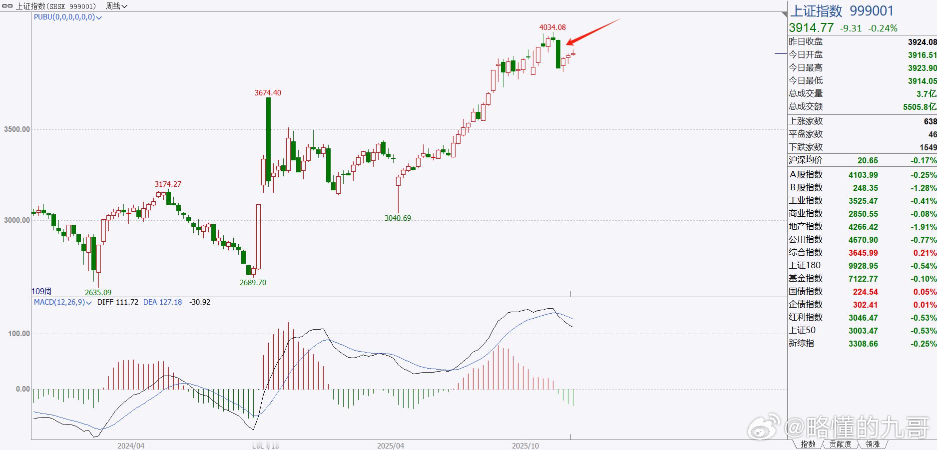微博股票 看上证指数的周线,目前的周线位置处于黄金分割0.618位置,如果在这个位置能收出长上影线,比如当前的这根周线,那么反弹结束的概率会很大这是一种可能性,另外一种可能性就是直接收上去,不收长上影线,那么就是继续反弹的概率大!以上是两种方向,等收线就可以了!然后按照图形的指示去开仓!股指
