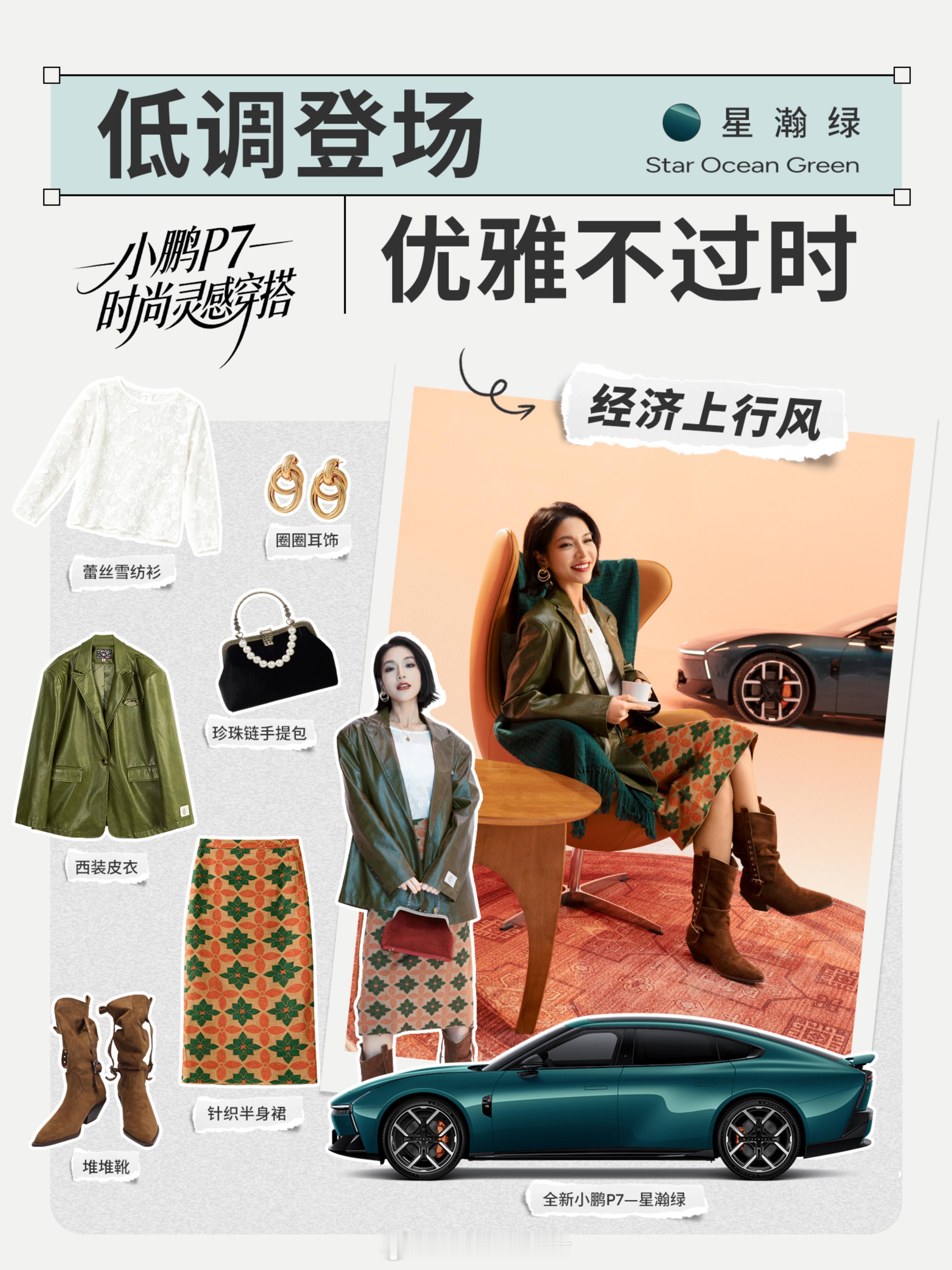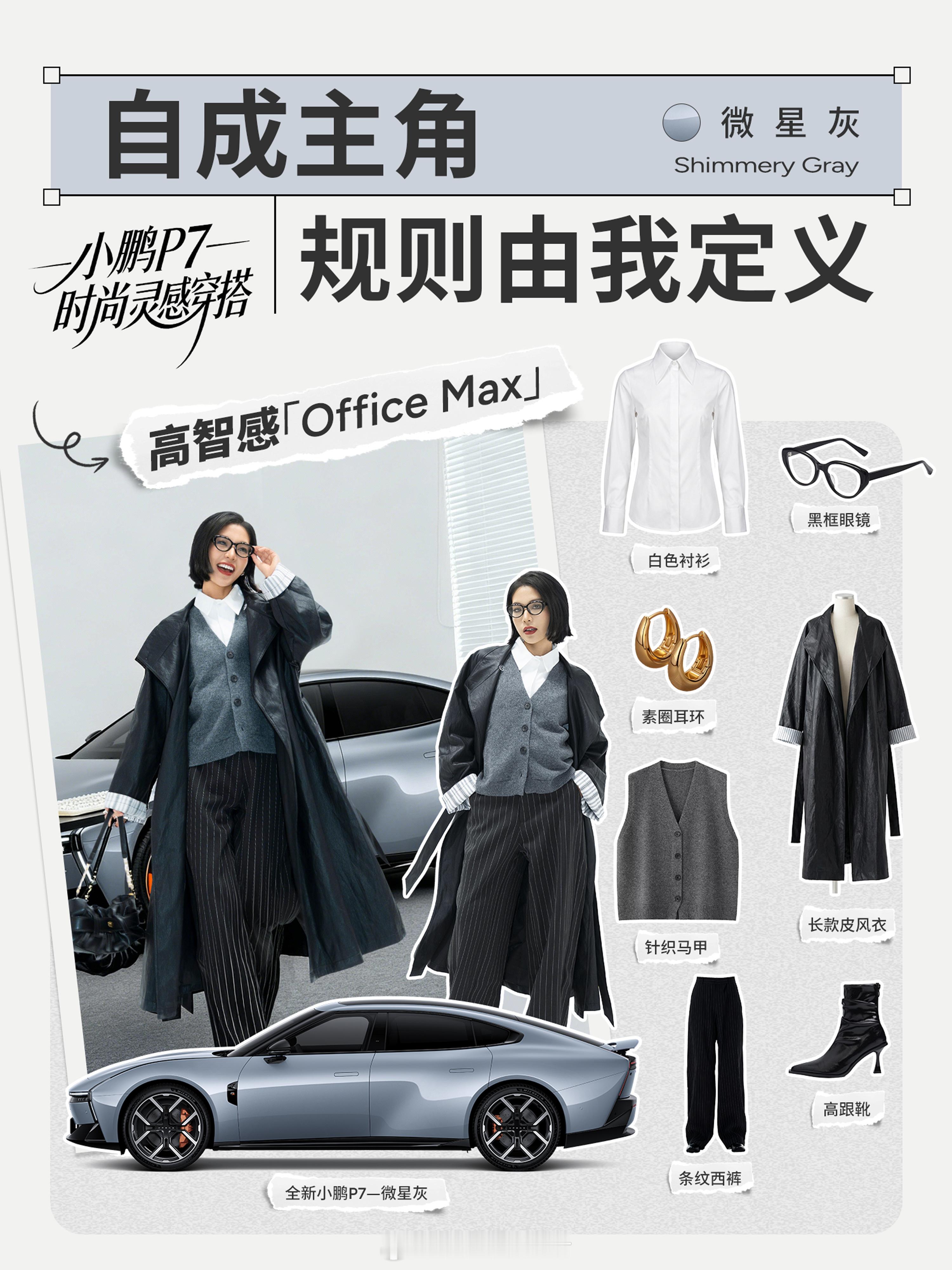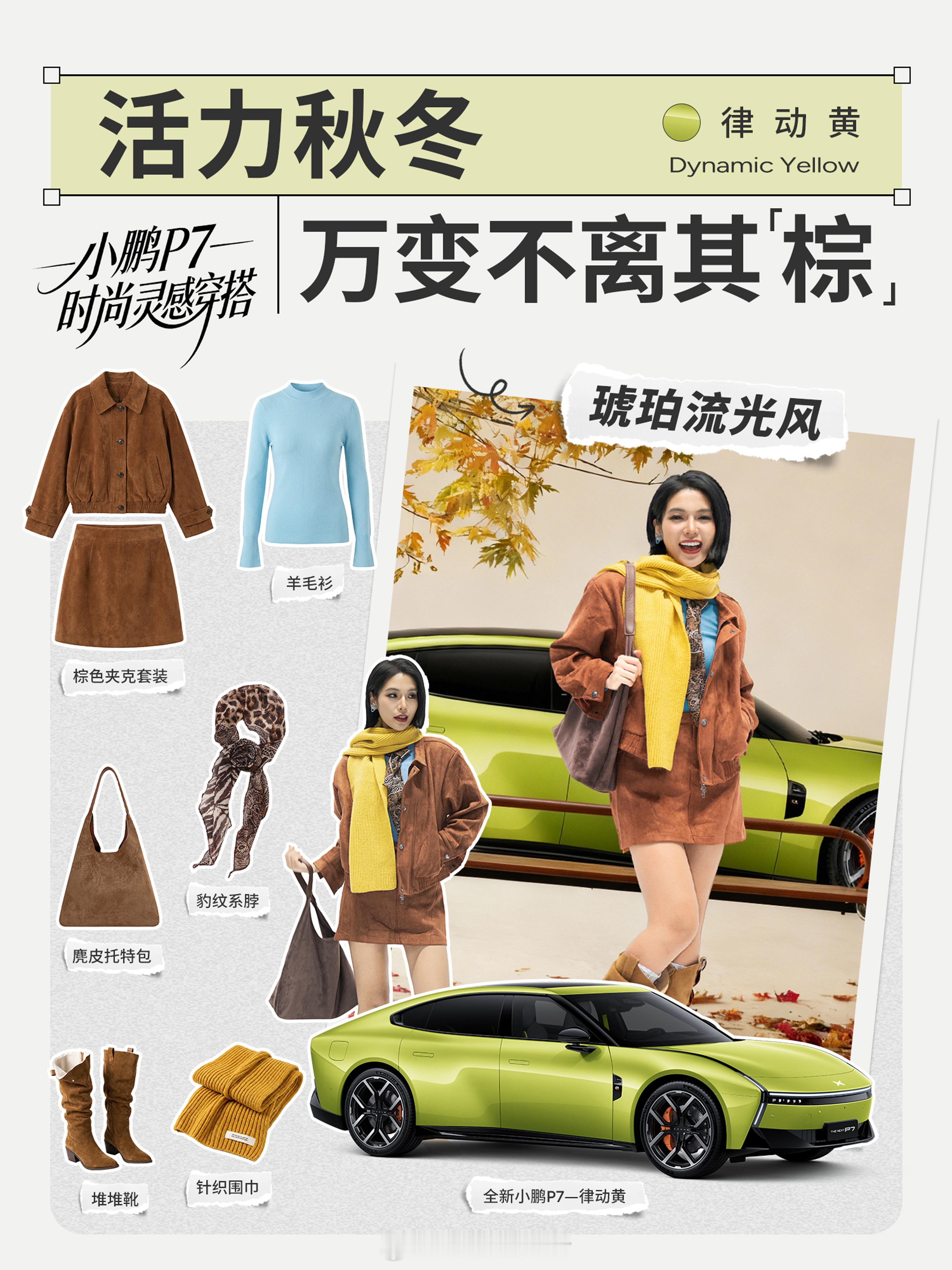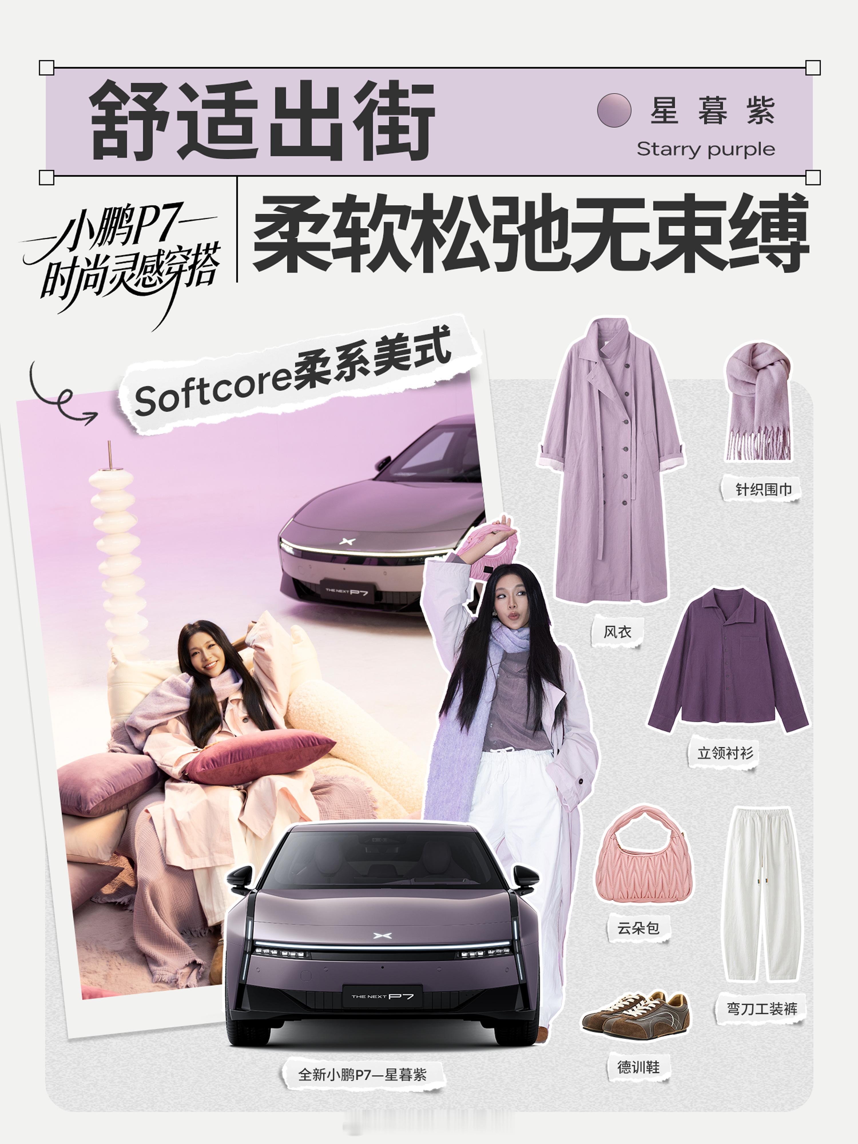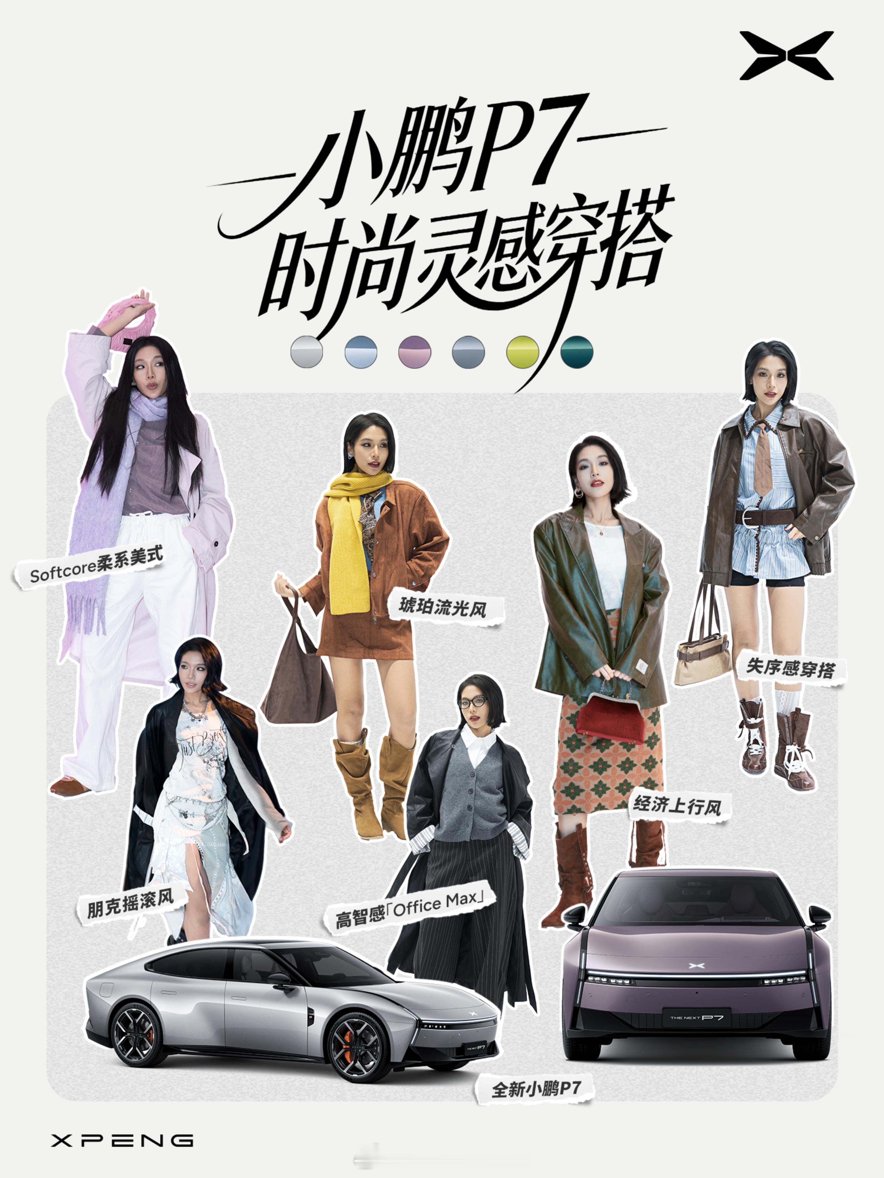 小鹏P7的六款时尚车色穿搭美学攻略来了,让出行成为风格宣言!六种时尚车色与当代流行穿搭趋势匹配,为每一次出场提供灵感:琥珀流光风、Softcore、失序感穿搭、高智感...车色即态度,场景即片场;从外到内都是怦然心动的信号,Dinamica羊绒材质、真皮座椅、主动式升降尾翼...随手一拍都是高级感大片,氛围直接拉满;开小鹏P7在路上被注视的每一个瞬间,都是审美同频的情绪兴奋剂👏小鹏P7的时尚灵感穿搭