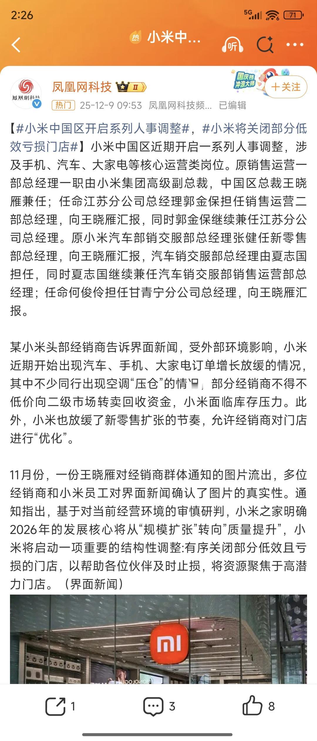 人事调整很正常,并不大惊小怪。感觉一系列动作的背后,小米一定是做好了后续破局的准备。还是那句话,永远相信美好的事情即将发生!
