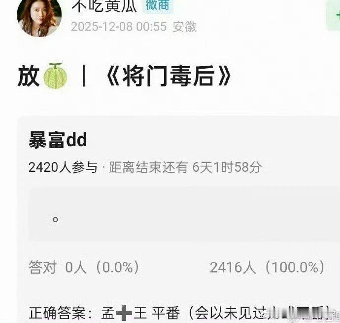 将门毒后瓜主说还是孟子义跟王鹤棣平番