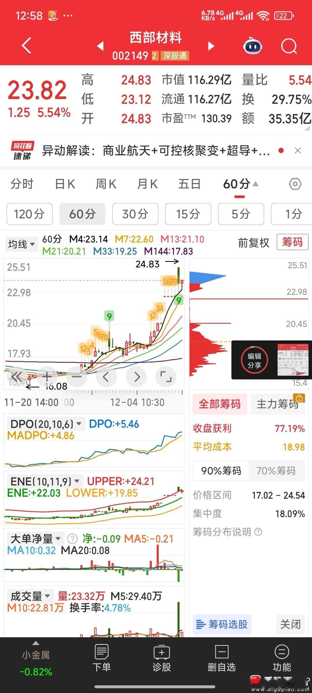 【下午观点】下午若标准股份没向上启动,可暂减一减,关注高乐股份和西部材料的启动加仓机会。