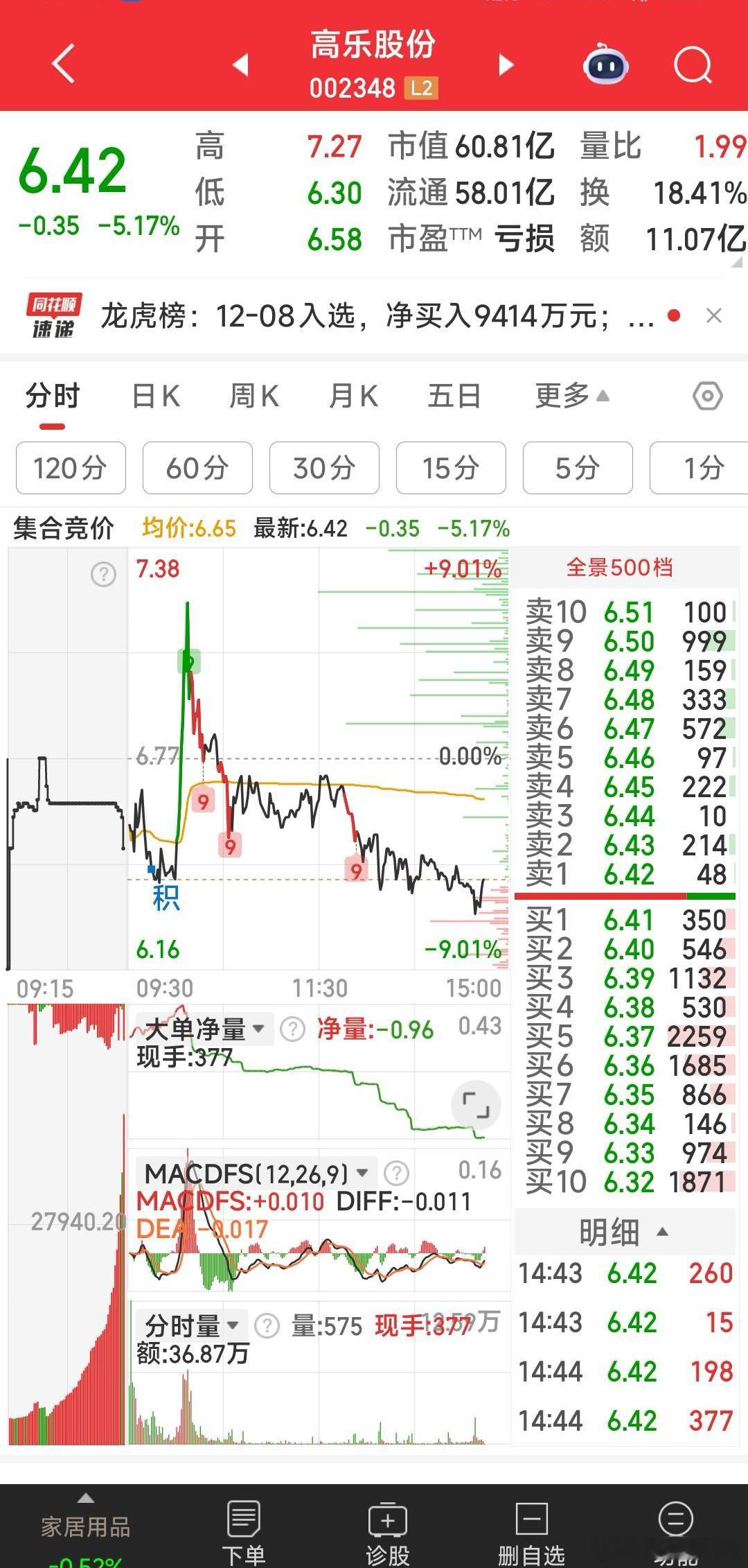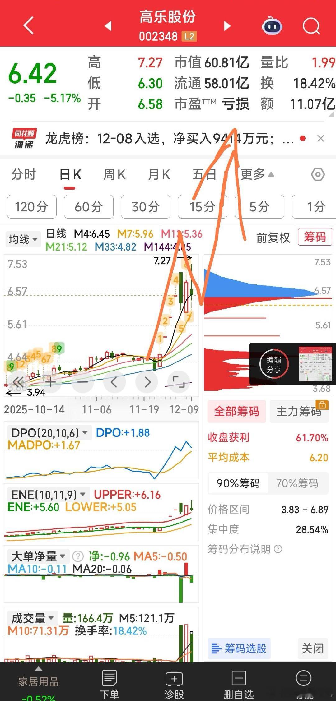 【尾盘再加高乐股份,明天高乐股份将突破新高】尾盘再加高乐股份,明天高乐股份将突破新高。试目以待。