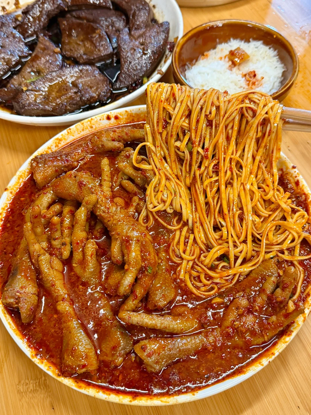 来长沙除了喝茶颜还一定要去吃的!苍蝇馆子,永远可以本地人排队都爱吃的店~离岳麓山和橘子洲不远,叫:叁幺叁!听说还有芒果台明星去吃过 手工鸭掌包肉每次必点😭鸭掌里面肉很扎实!分量好足~还有土匪猪肝一点不腥巨下饭好吃!其他还点了老板牛肉、鱼籽鱼泡也是盲点都没踩雷!不愧是岳麓区的必吃榜~来长沙的姐妹真心建议尝尝,不会失望