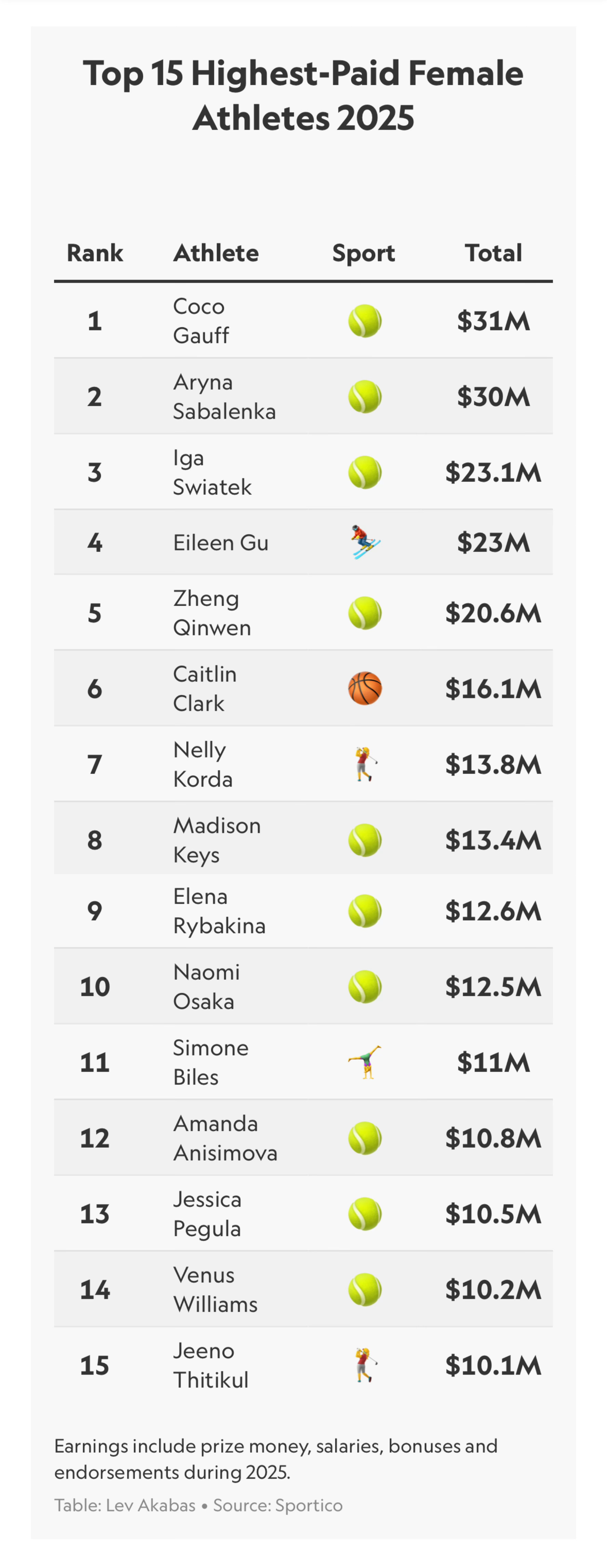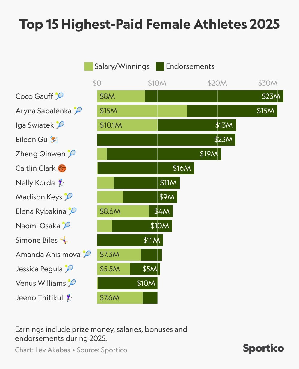 体育大赏 年度体育榜样力量 【郑钦文的商业爆发力,藏着中国网球的黄金时代】🎾💰12月的热搜还在为郑钦文沸腾!距上次参赛两月有余,她凭2025全球女运动员收入榜第五的成绩再度破圈——2060万美元收入中,1900万来自场外赞助,比去年暴涨400万!要知道她今年因肘伤缺席多场赛事,奖金大幅缩水,这份数据恰恰印证:品牌押注的是她无可限量的未来。这位现23岁的“中国一姐”,是李娜后首位跻身大满贯、WTA1000赛以及总决赛决赛并闯入世界前四的中国选手。参考如今的职业化康复水平,她至少还有十年黄金期。这让我想起2011年李娜法网夺冠掀起的网球热潮,如今郑钦文携2024年巴黎奥运金牌而来,正掀起第二波浪潮。同属IMG经纪公司的她,手握迪奥、奥迪、劳力士等高端代言,商业版图覆盖奢侈品、汽车、数码等全领域,国际价值甚至超越萨巴伦卡、斯瓦泰克,仅逊高芙,国内唯有谷爱凌能并肩。她的爆发更是中国网球市场的缩影。网球自带高端属性,全球巡回赛全年曝光,叠加中国新兴市场红利,只要赛场有成绩就不缺赞助商。中网、上海大师赛票房与赞助屡创新高,曾“瘸腿”的男网也集体崛起,运动普及度持续攀升——毕竟这项能从小打到老的运动,完美契合当下健康生活潮流。但比成绩更圈粉的是她的人格魅力!赛场上是不服输的“大女主”,奥运赛场为国征战到力竭;赛场下采访真诚敢言,颁奖礼即兴唱歌大方不扭捏,流利英文尽显国际范儿。高挑身材搭配百变造型,让她成为《VOGUE》《ELLE》等顶刊常客,更是首位二登《VOGUE》封面的中国运动员,12月闭年刊携爱犬出镜的迪奥大片,连萨巴伦卡、莱巴金娜都忍不住点赞。如今郑钦文在西班牙冬训,虽排名暂列24位,但印第安维尔斯、迈阿密、法网八强,罗马击败世界第一萨巴伦卡跻身四强等战绩仍亮眼。正如她在采访中说:“人生的高楼,要一层层打。” 从赛场成绩到商业价值,从个人魅力到市场热度,郑钦文正带着中国网球稳步登高。2026赛季,等一个健康归来的她!