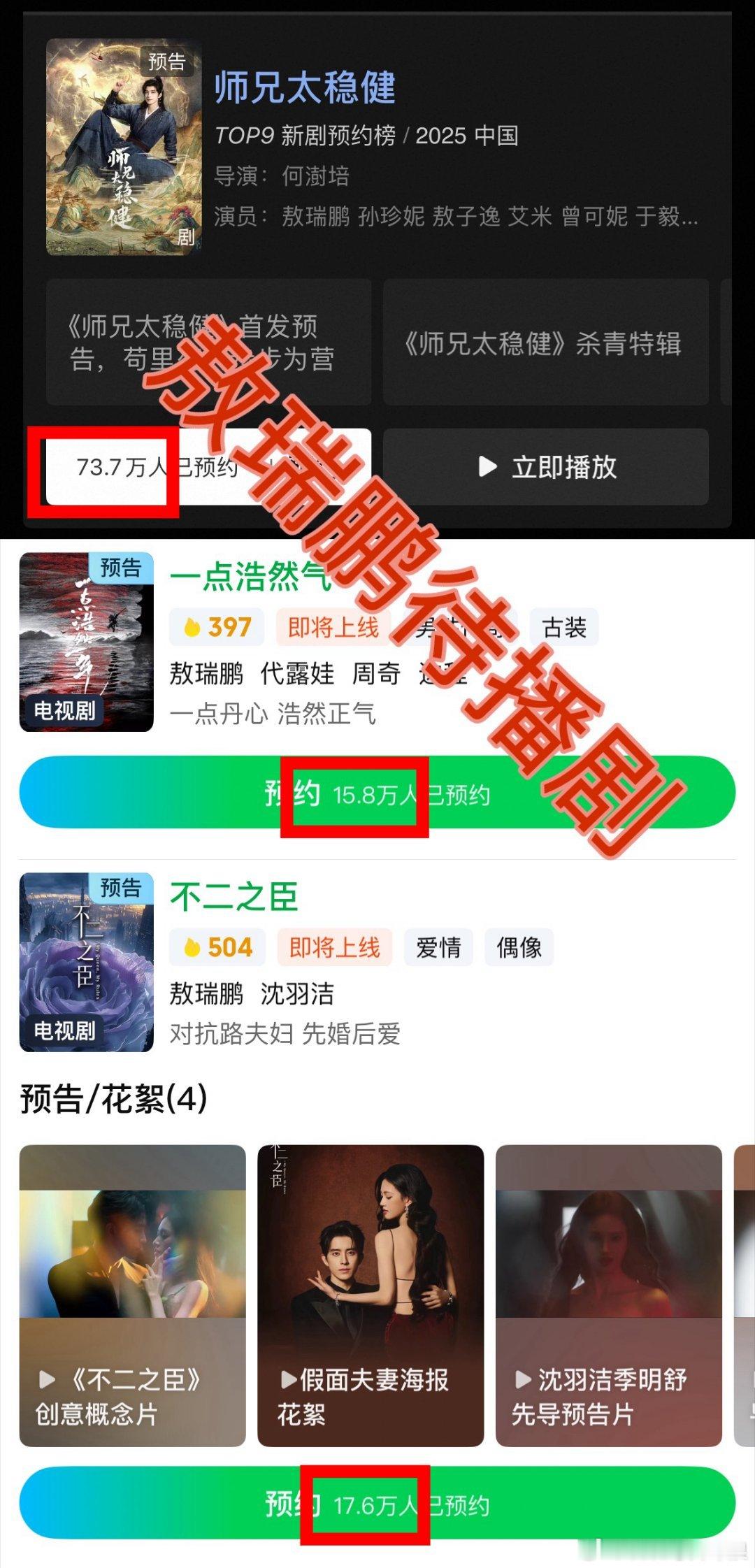 张凌赫、敖瑞鹏的待播剧,两人待播剧还真不少,而且都热度很大,你期待谁的剧