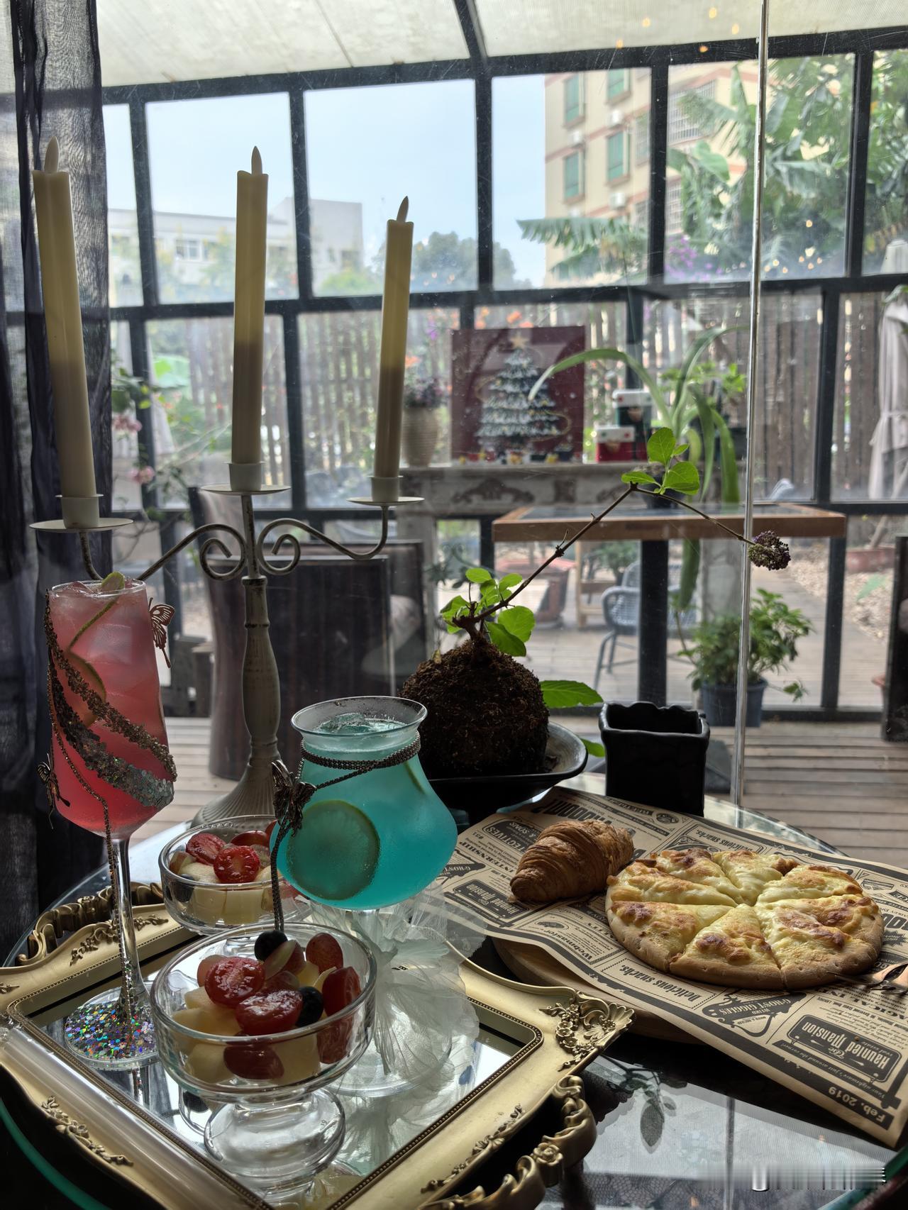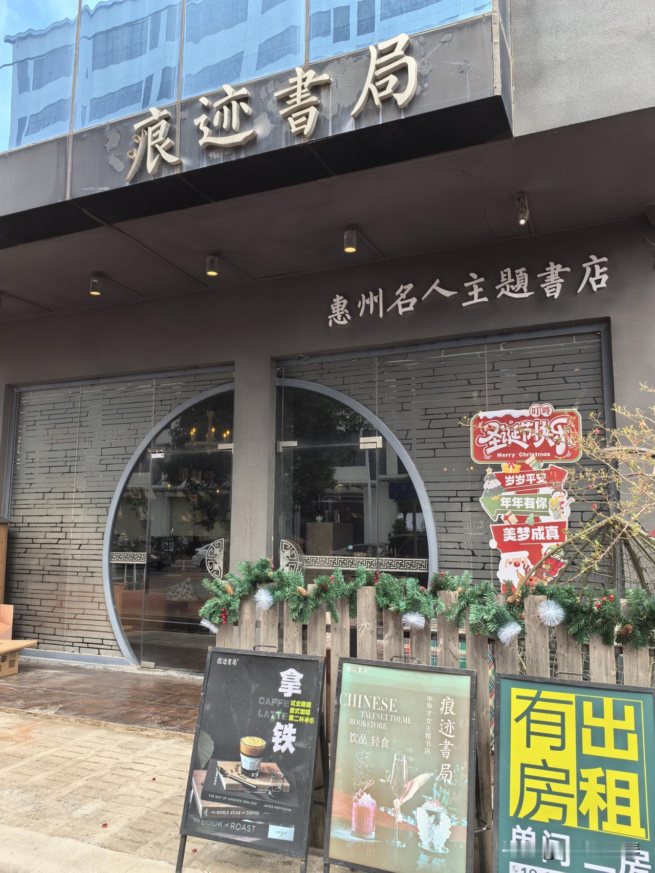 真的要大力推荐这家店!!环境好到,待一下午也不觉浪费。享受个人空间的好去处[心][心]看得出老板很有想法,店面布置🉐很精致。咖啡☕,饮品,小吃,书局为一体~~ 痕迹书局,位于惠州水口,位置虽有点偏但瑕不掩瑜,喜静的朋友一定喜欢。我就在那呆了一下午,看着服务员妹妹忙碌的身影。 [彩虹]餐厅环境: 将美食和书局相融合,装饰风格很讲究,以惠州历史名人为主题,🈶廖仲恺、苏东坡、祝枝山等等。 摆放各类型图书,供客人翻阅,还展示了一些做咖啡的工具的。除了室内,还有室外区域,摇椅摇起来~ 感觉餐厅老板会画画,有未干的画作,不知感觉是否正确?! 好喜欢他们的吧台,太好拍了~ [彩虹]美食推荐: 网上推出各类套餐,有中式西式,我选的是下午茶双人套餐。 两杯饮品,一个榴莲披萨,两份水果拼,一个牛角包。高脚杯搭配蝴蝶装饰,与饮品相得益彰,显得好高级! 披萨除了榴莲口味,还可以选其他咸口的;牛角包不错,吃起来脆脆的。 [烟花]餐厅地址: 惠城区水口红岭路21号痕迹总部(日咖夜酒) 营业时间: 12:00~20:00 人均消费: 30~40 惠州美食