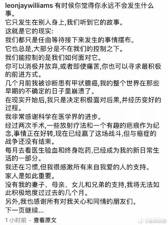 立威廉说要终身吃药小时候看《天国的嫁衣》《绿光森林》,他就是我心里的初代偶像剧男神啊!温柔又有气质的霸总,怎么也想不到49岁会确诊甲状腺癌二期 两次手术切了那么大的肿瘤,瘦了3公斤,为了不传染家人还自己搬去空房住,治疗花了快百万,肺部还有结节要盯着,这个其实也很危险,随时有癌变可能还有人说甲状腺癌是“幸福癌”,这哪幸福啊?手术疼、一辈子要吃药、还得天天担心复发,想想都难受。立威廉 立威廉说要终身吃药